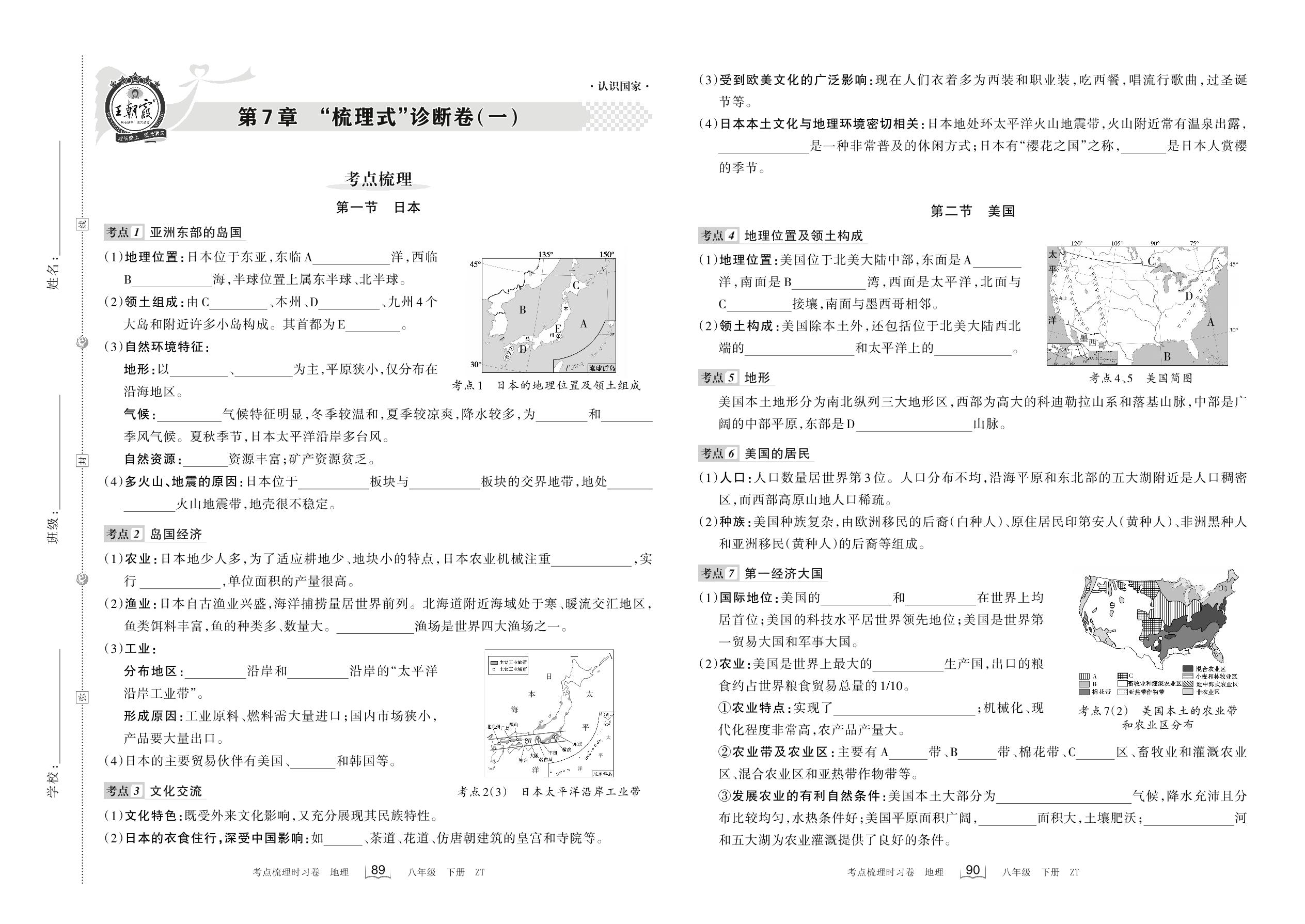 2023下册八年级地理中图版 第7章 “梳理式”诊断卷(一)
