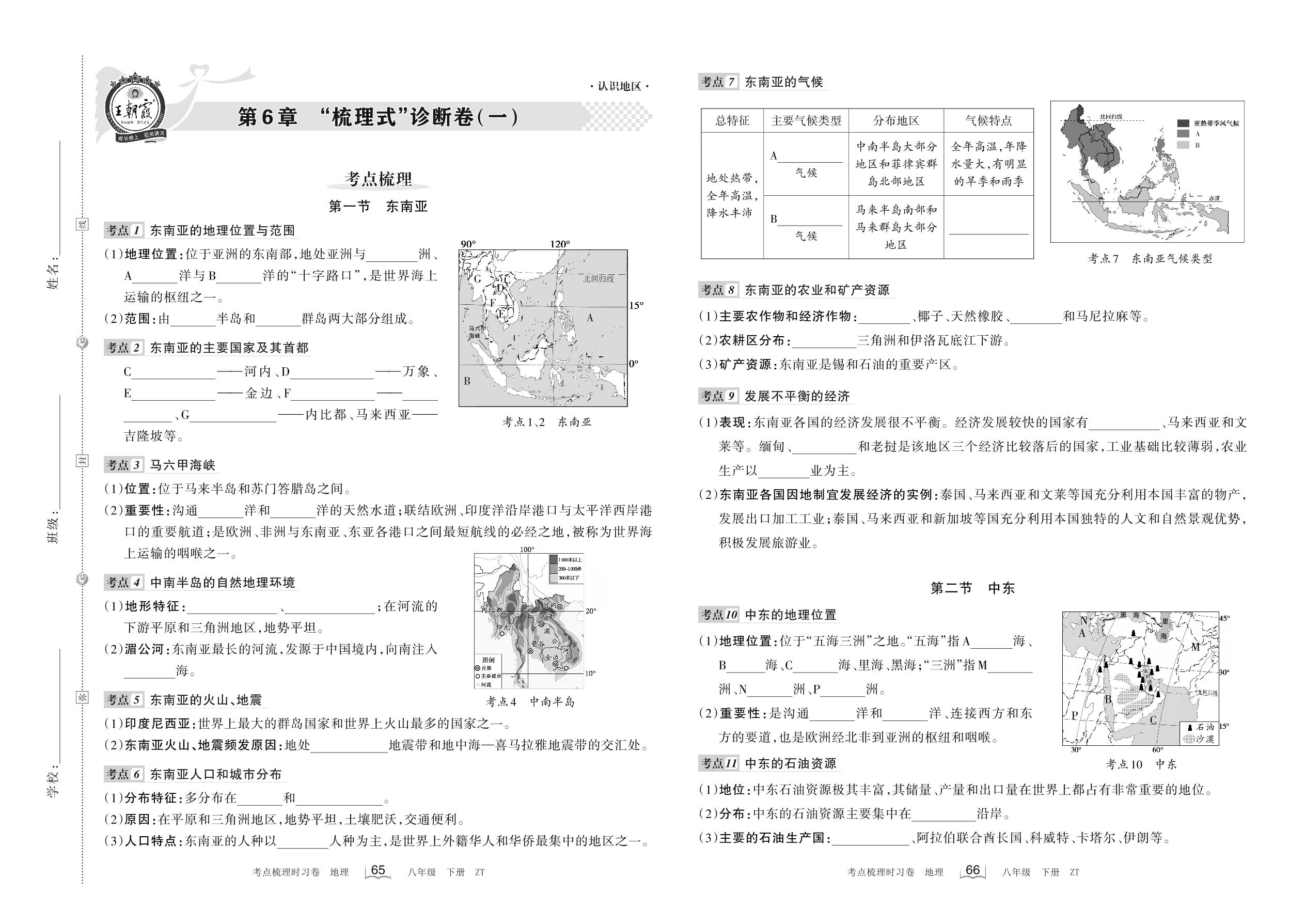 2023下册八年级地理中图版 第6章 “梳理式”诊断卷(一)
