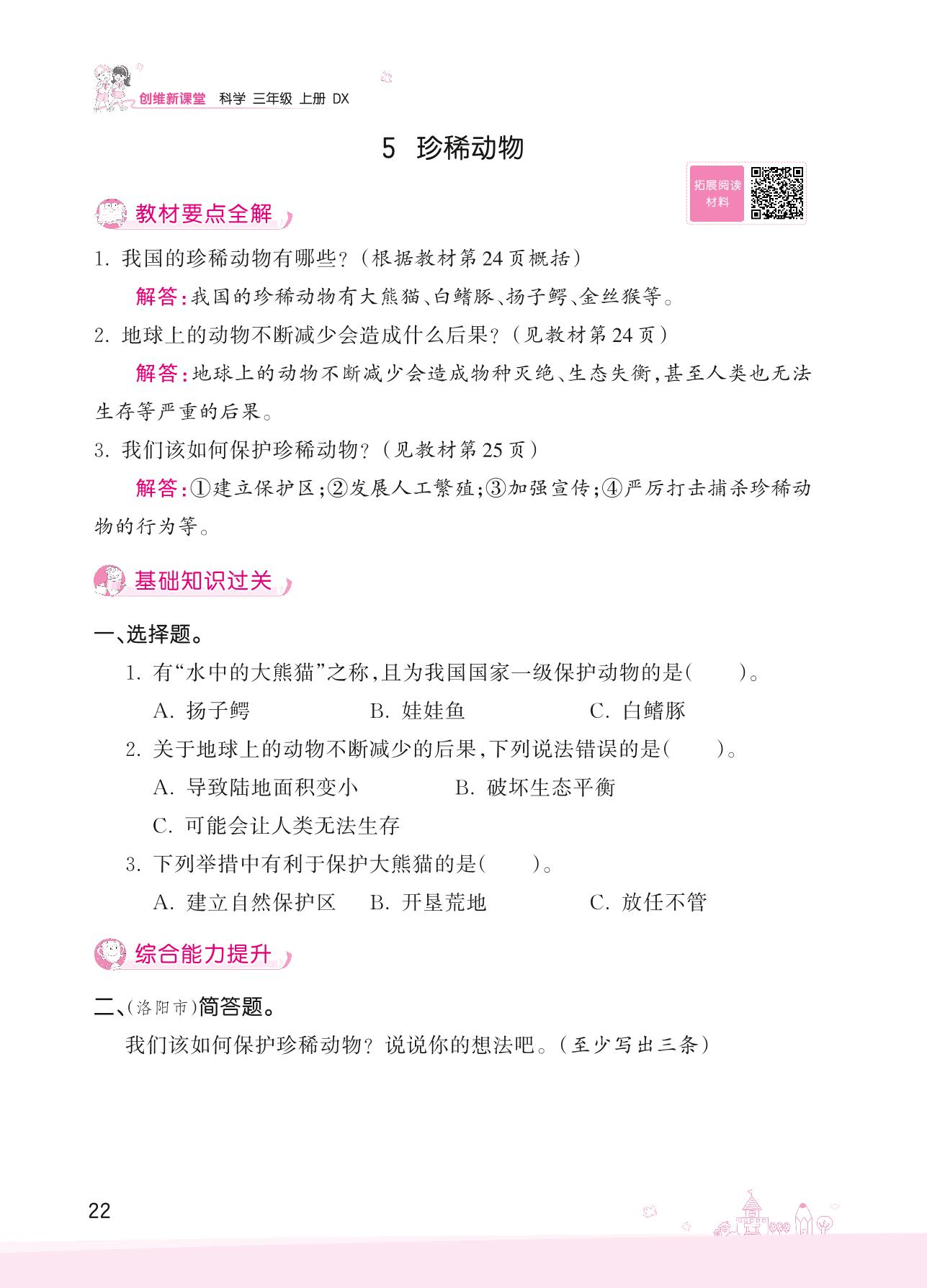2022上册三年级科学大象版 第二单元 动物的特征——5 珍稀动物