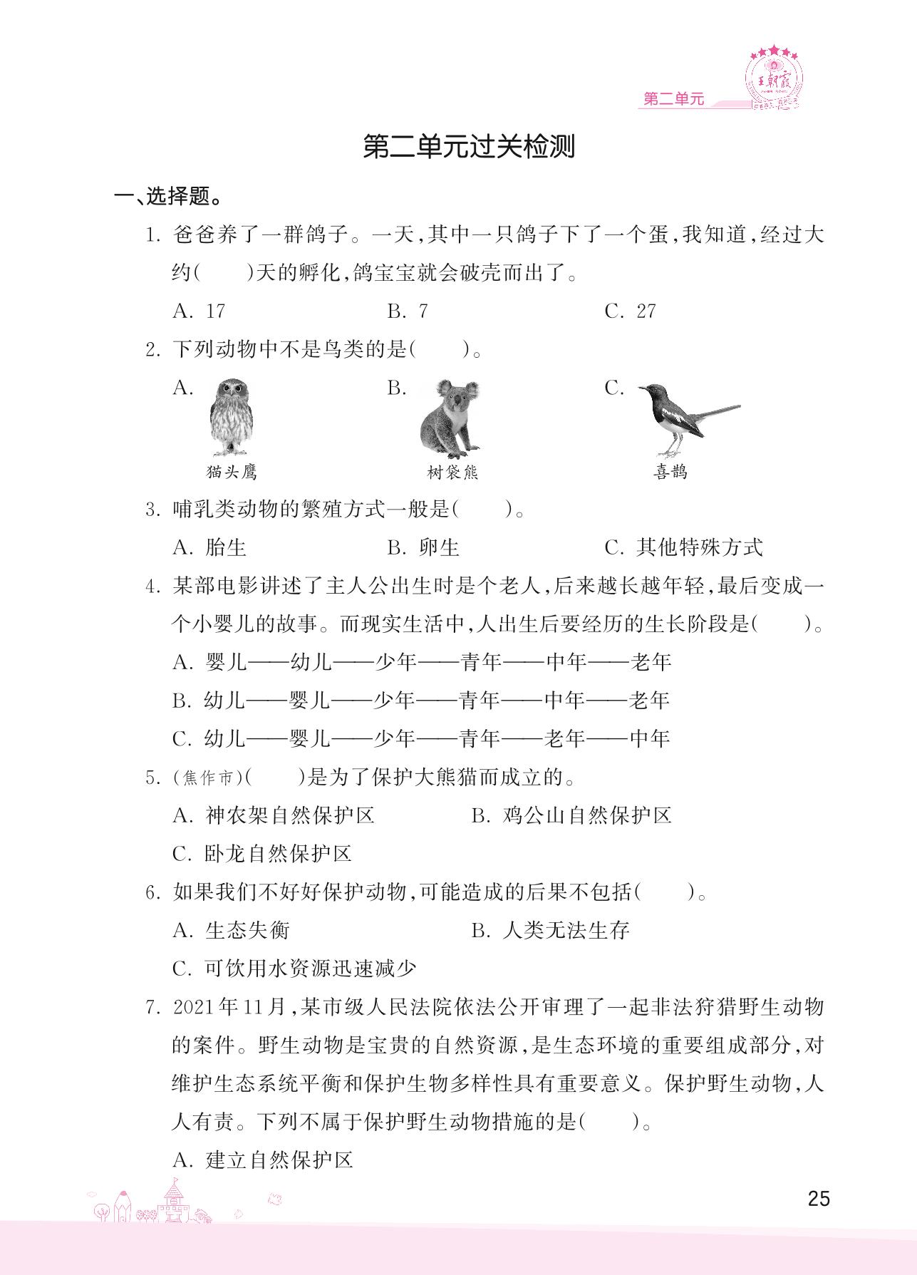 三年级科学大象版上册单元卷