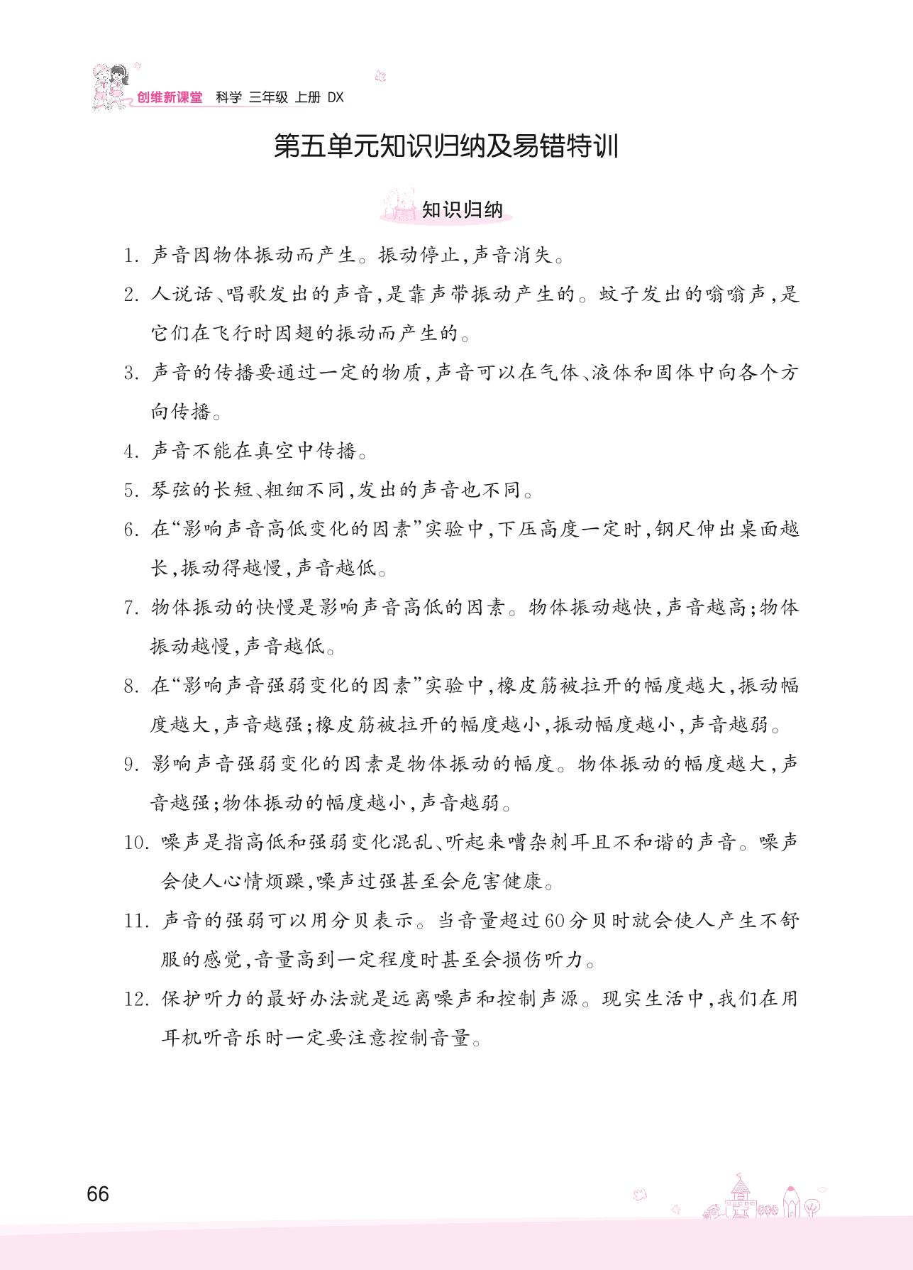 2022上册三年级科学大象版 第五单元知识归纳及易错特训