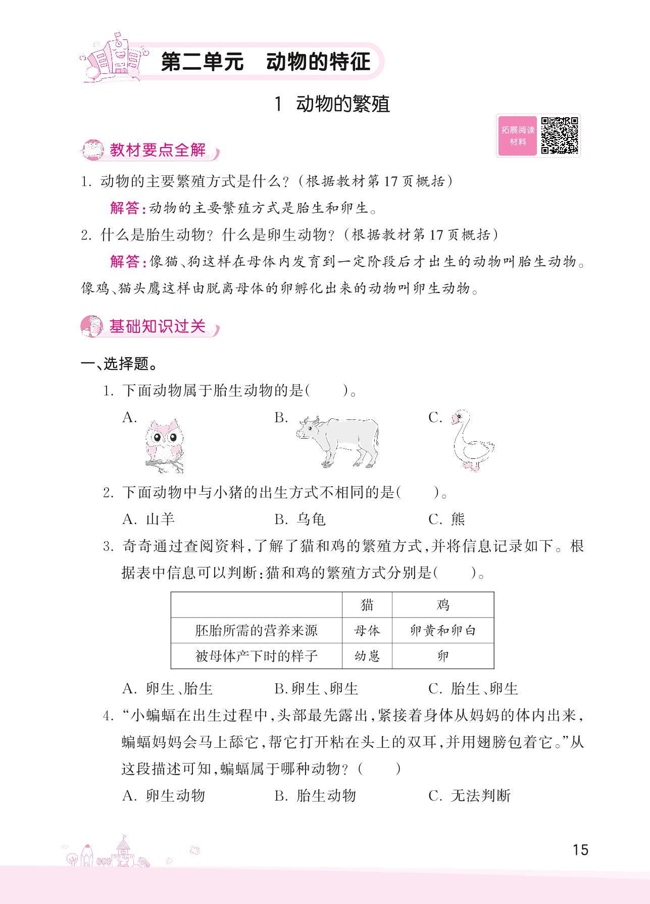 2022上册三年级科学大象版 第二单元 动物的特征——1 动物的繁殖