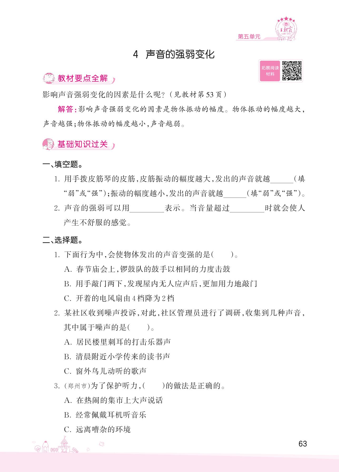 2022上册三年级科学大象版 第五单元 奇妙的声音——4 声音的强弱变化