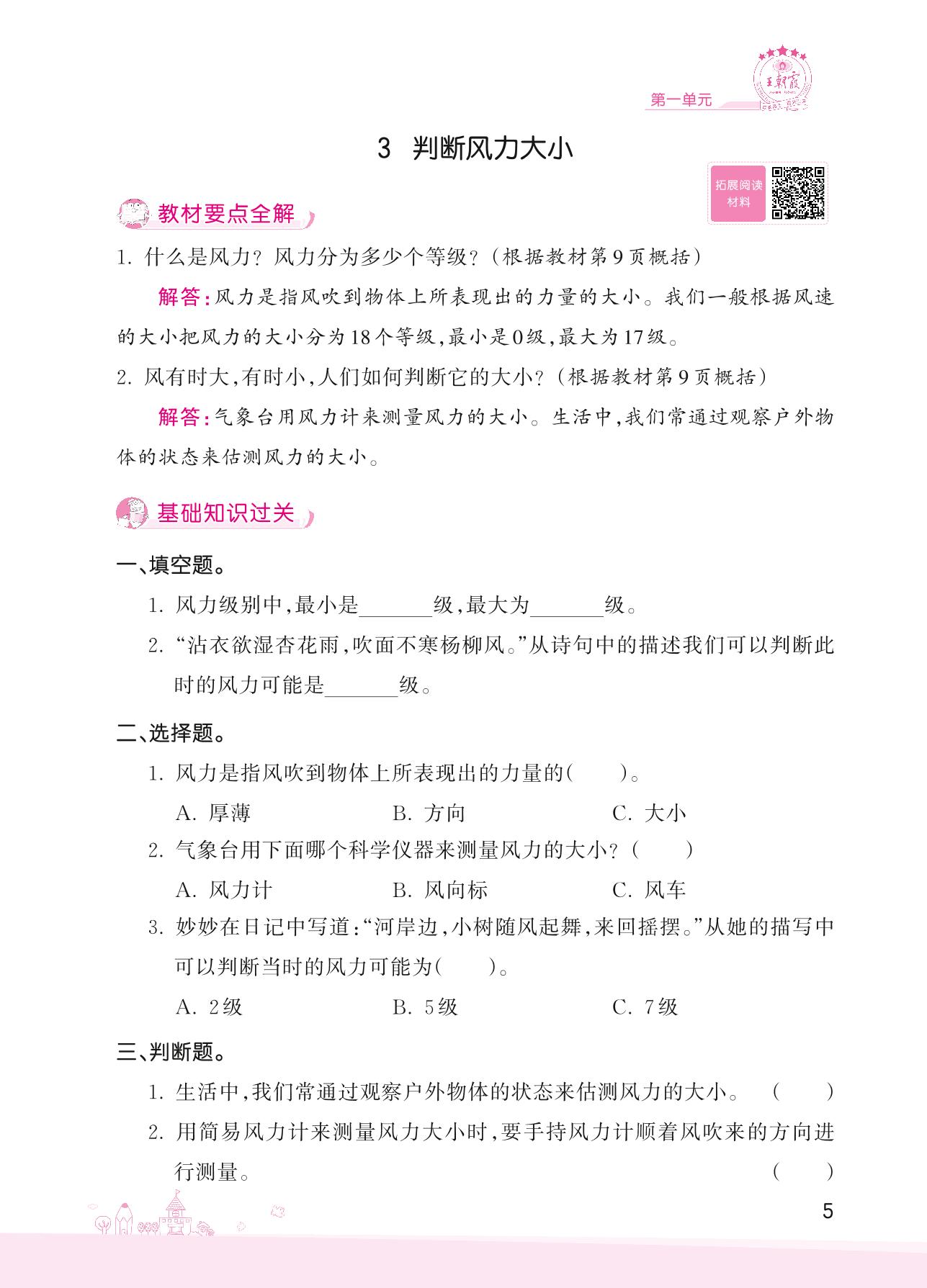 2022上册三年级科学大象版 第一单元 小小气象员——3 判断风力大小