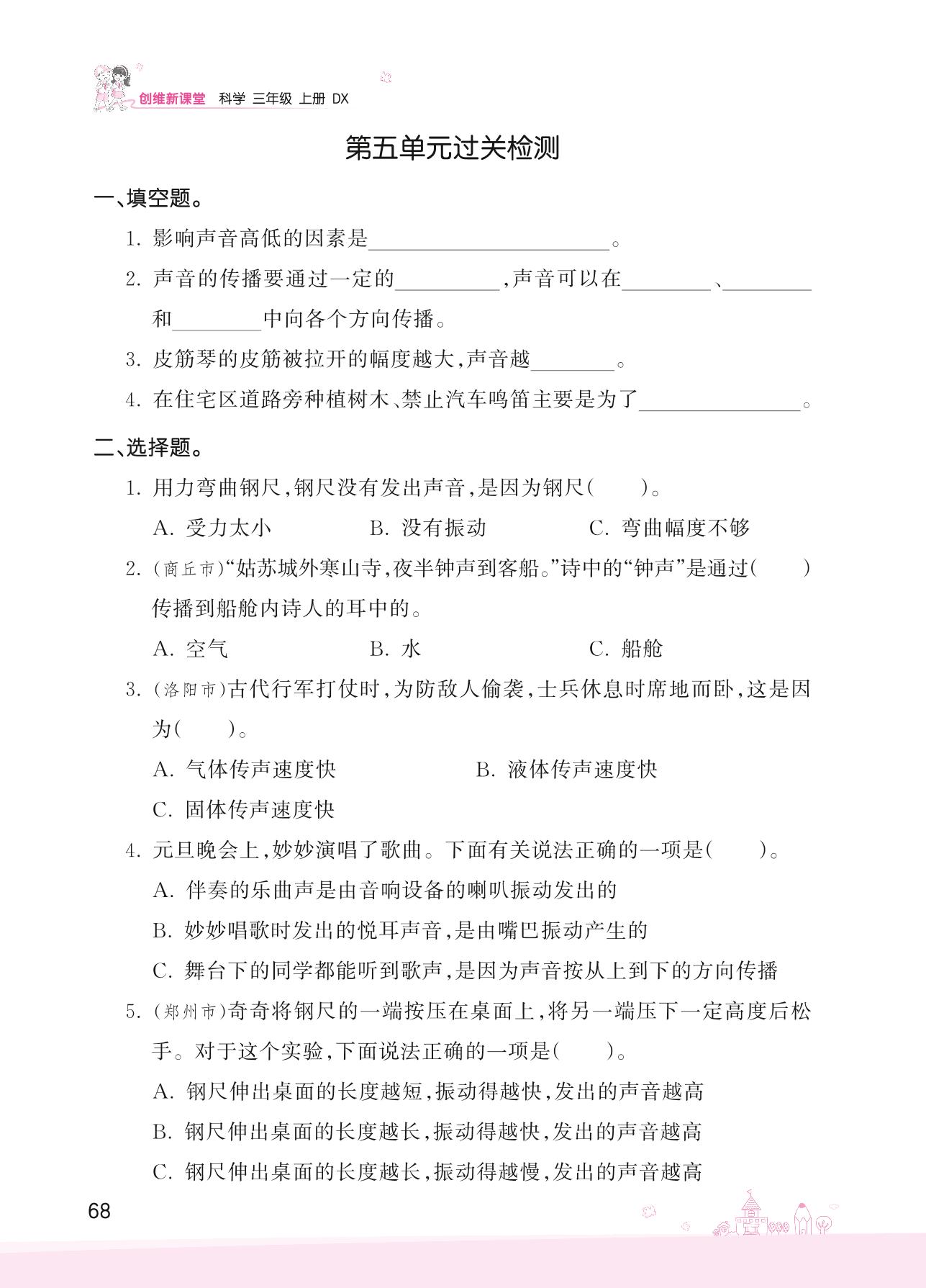三年级科学大象版上册单元卷