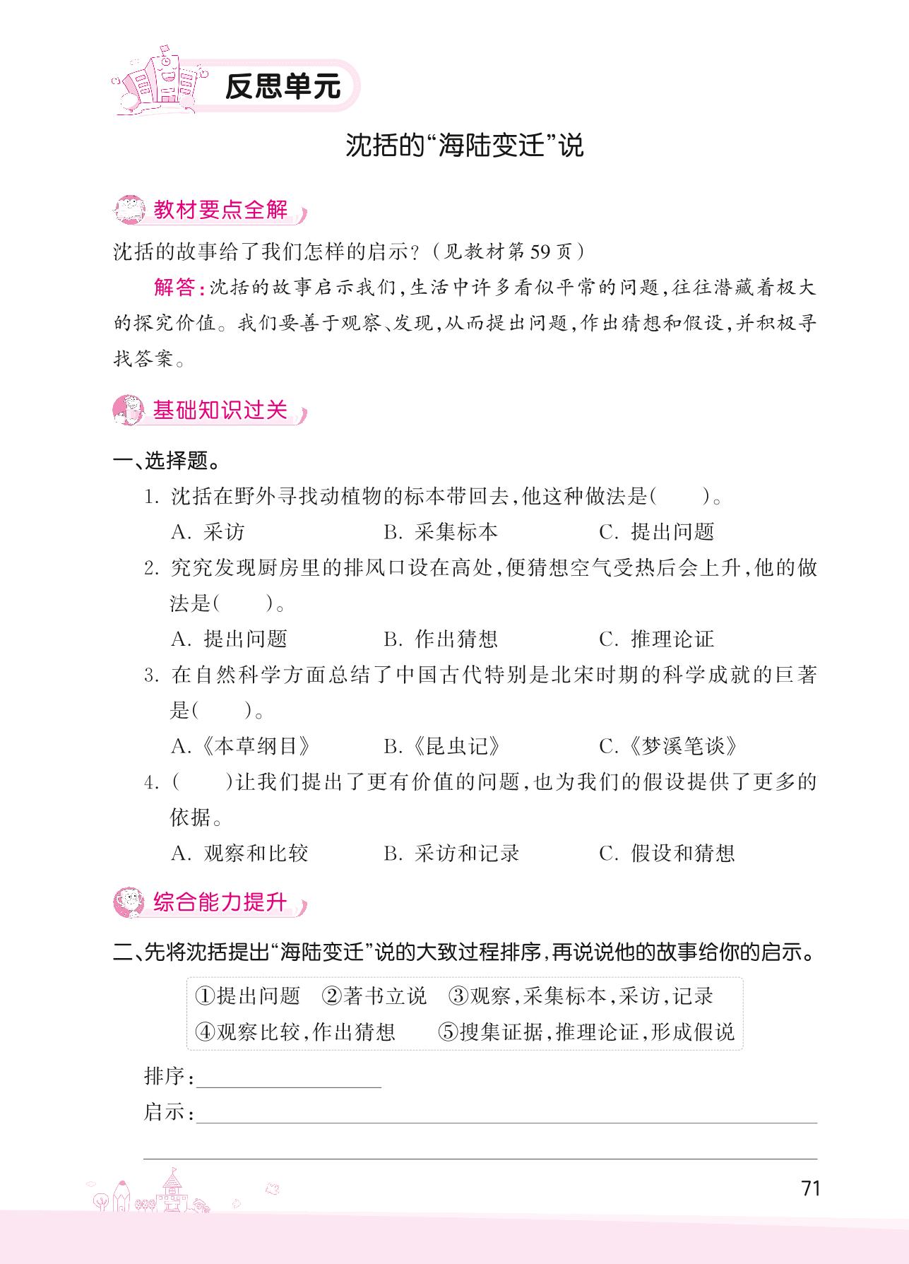 2022上册三年级科学大象版 反思单元——沈括的“海陆变迁”说