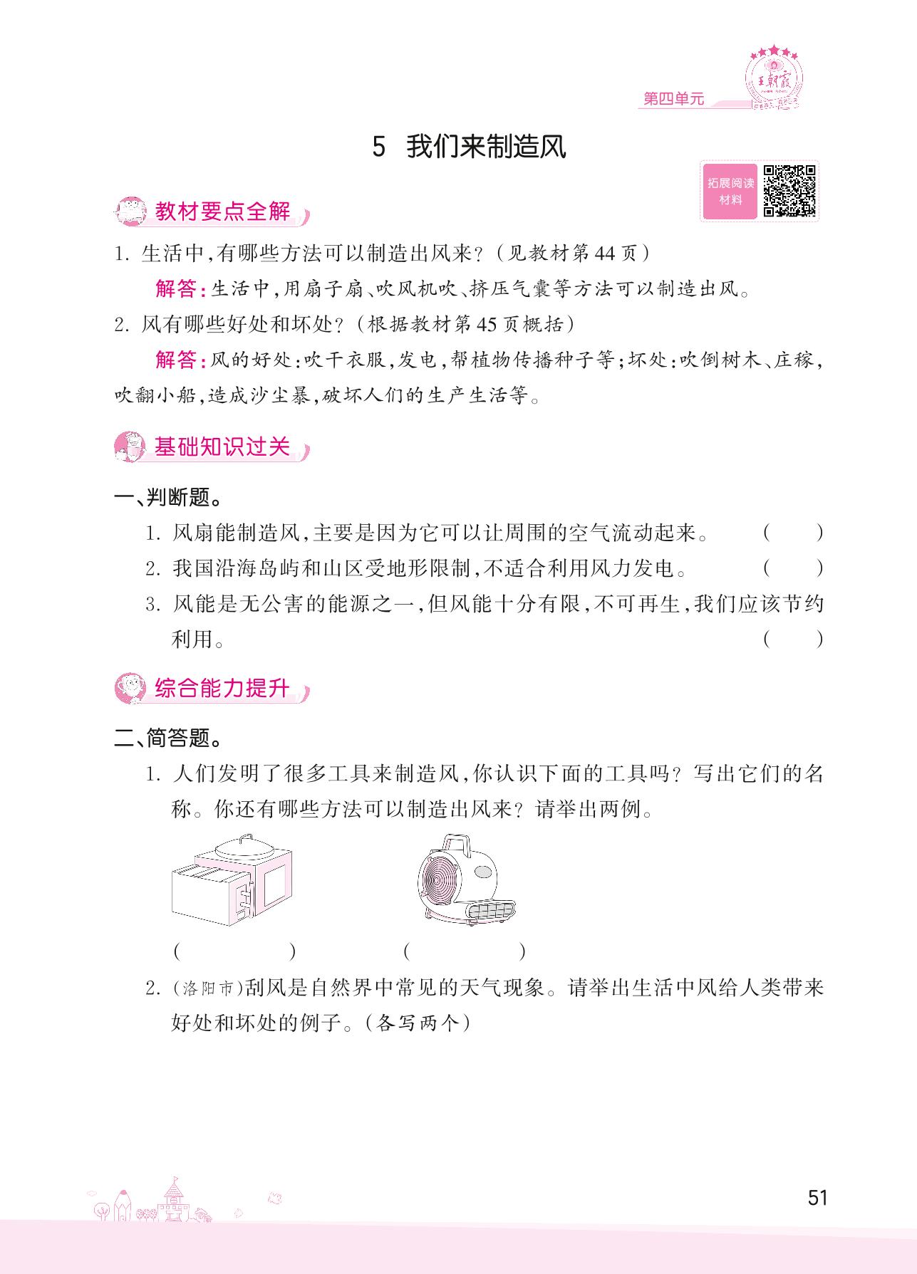 2022上册三年级科学大象版 第四单元 流动的空气——5 我们来制造风
