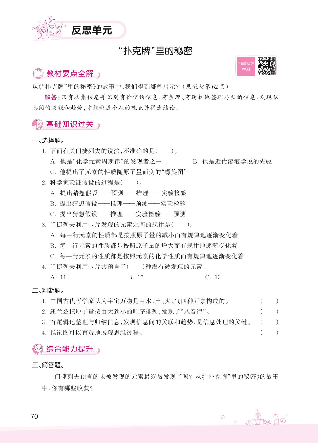 2022上册六年级科学大象版 反思单元——“扑克牌”里的秘密