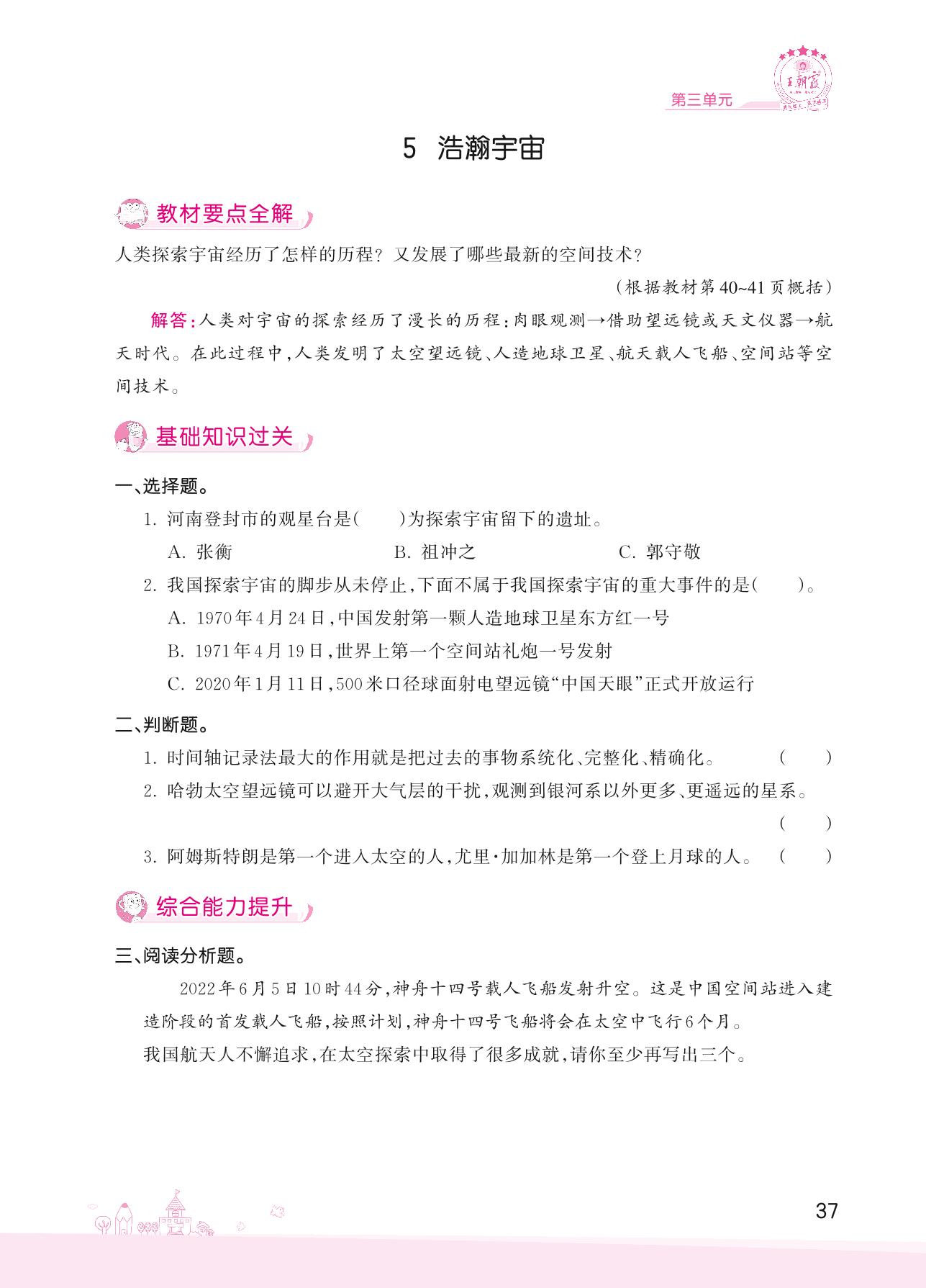 2022上册六年级科学大象版 第三单元 浩瀚宇宙——5 浩瀚宇宙