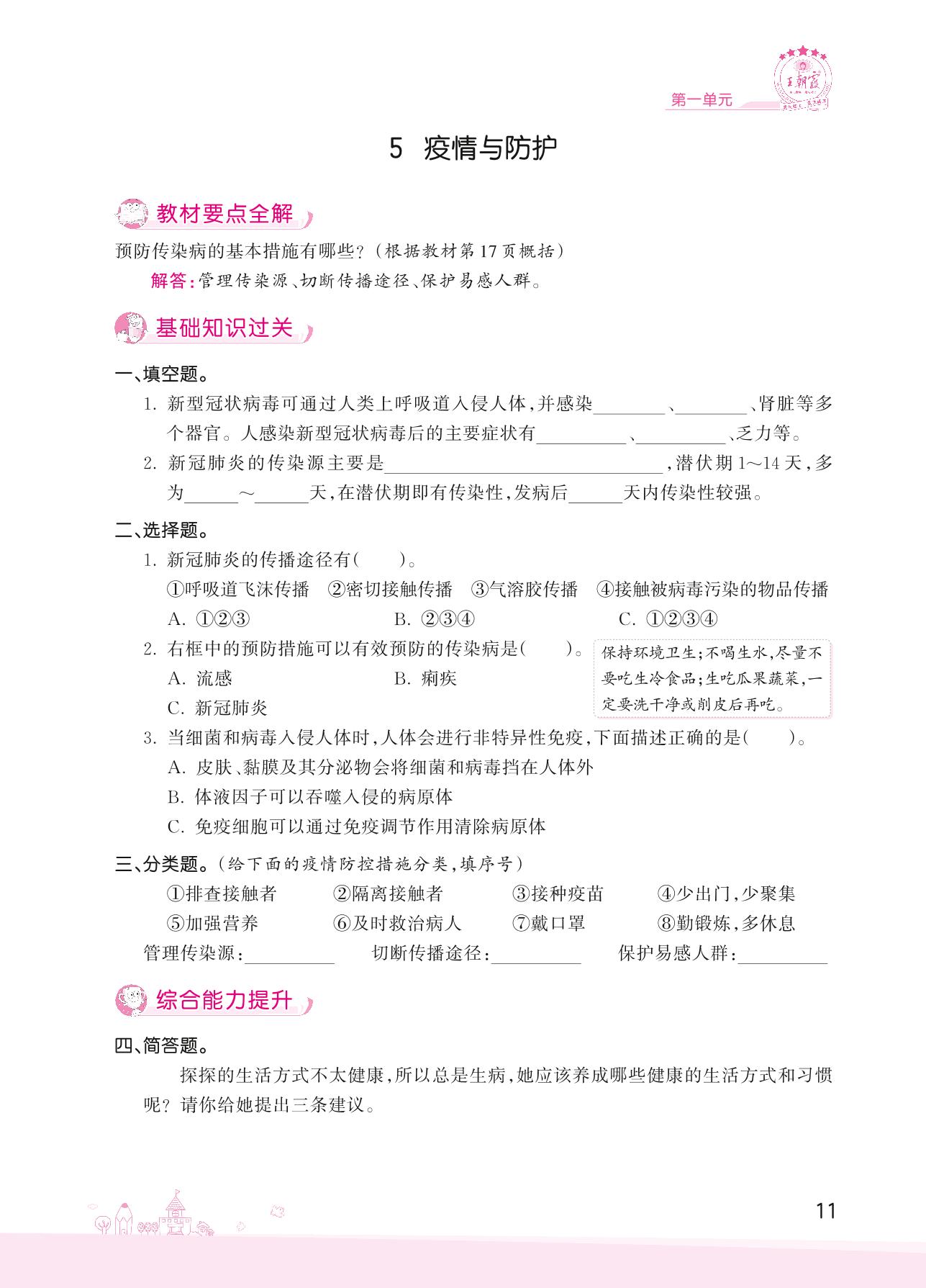 2022上册六年级科学大象版 第一单元 显微镜下的世界——5 疫情与防护