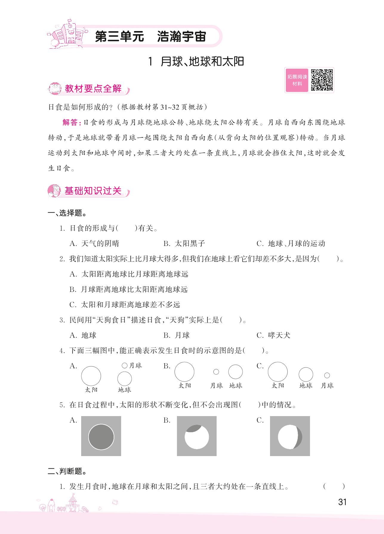 2022上册六年级科学大象版 第三单元 浩瀚宇宙——1 月球、地球和太阳