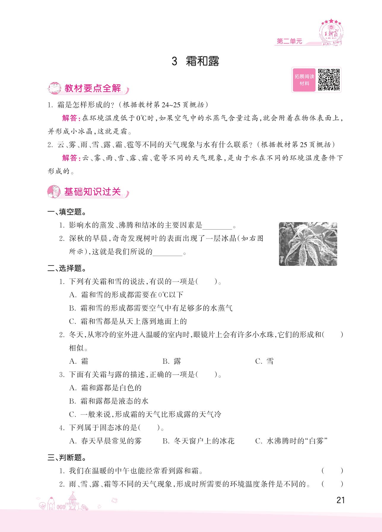 2022上册六年级科学大象版 第二单元 循环的水——3 霜和露