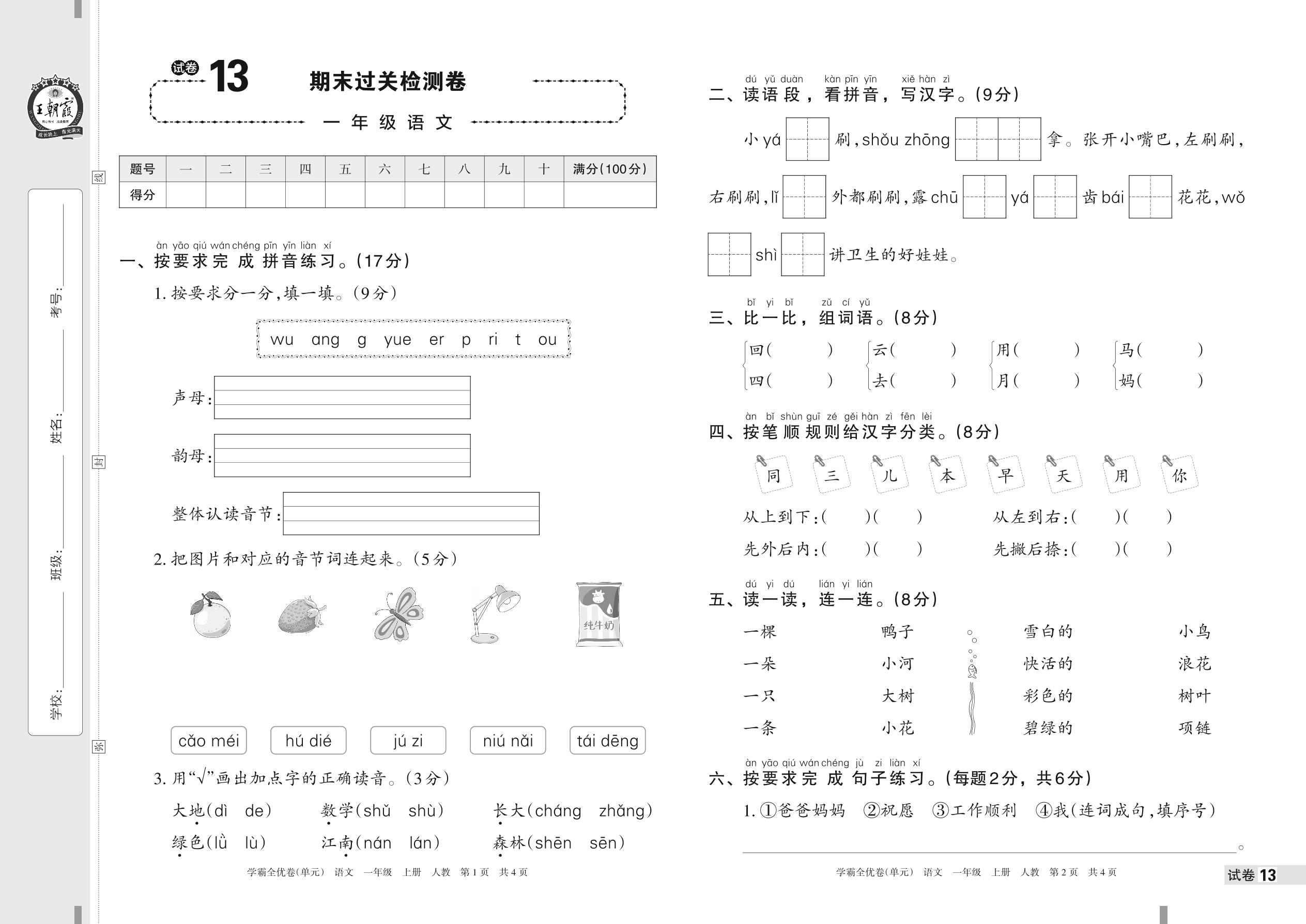 2022上册一年级语文人教版 试卷13 期末过关检测卷