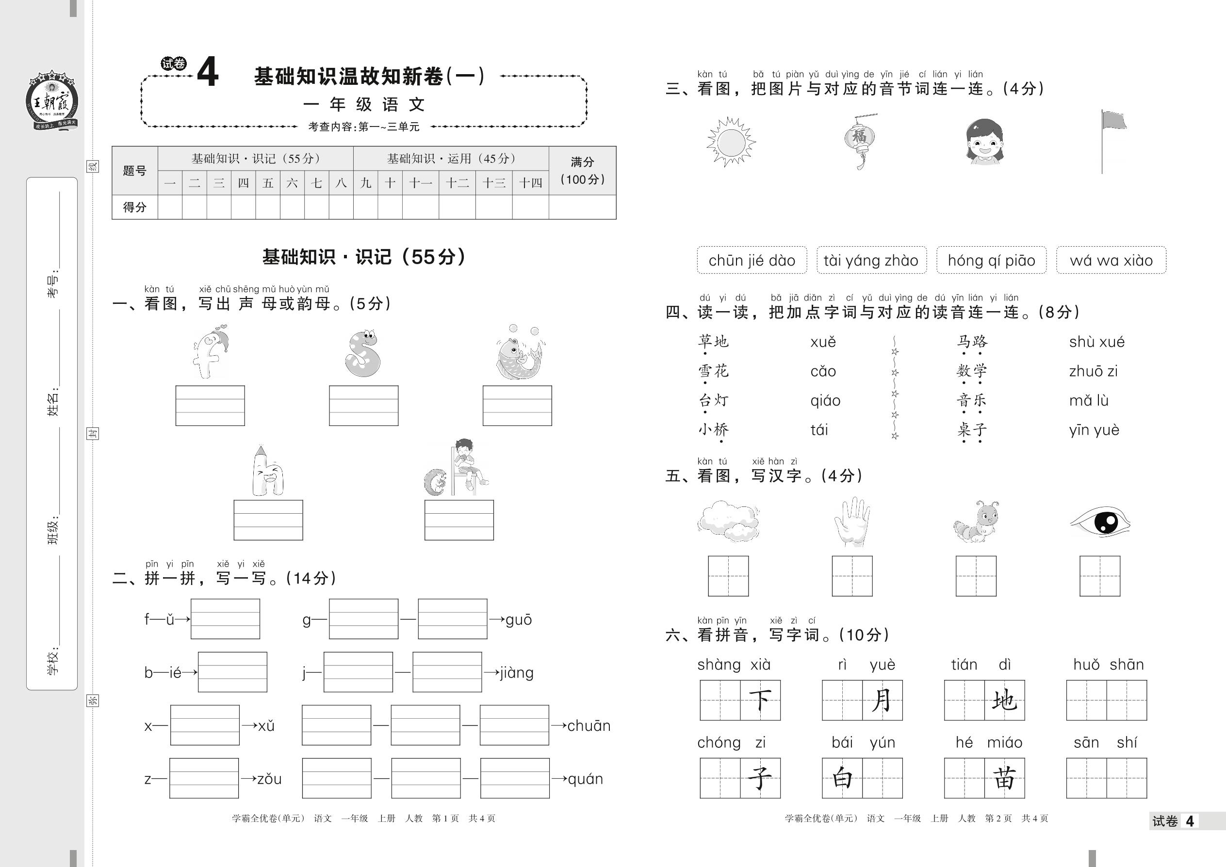 2022上册一年级语文人教版 试卷4 基础知识温故知新卷(一)