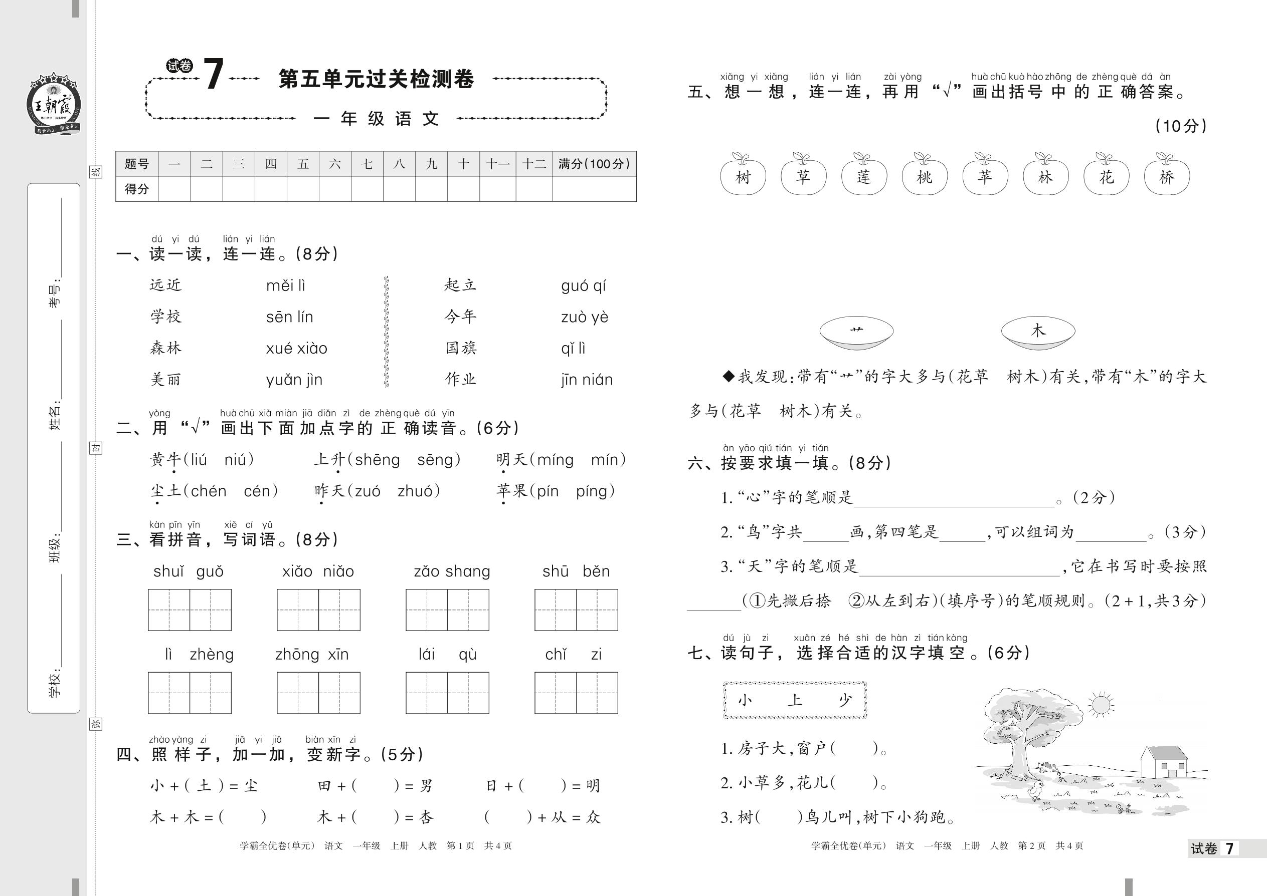 一年级语文人教版上册单元卷