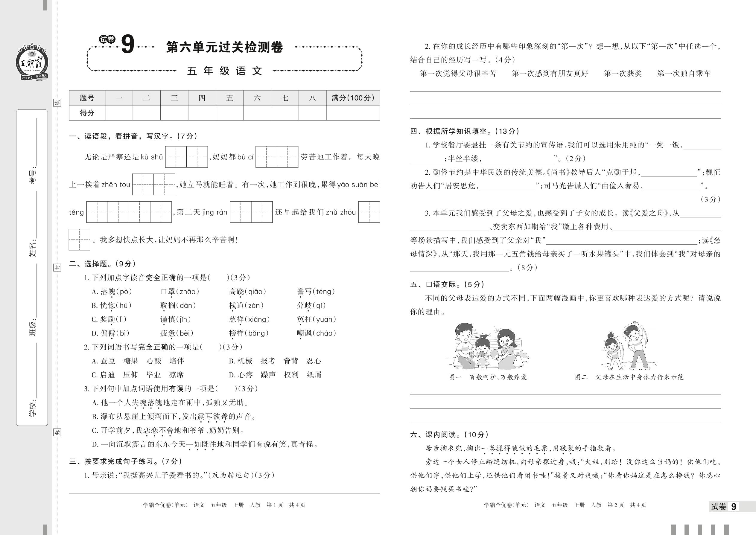 五年级语文人教版上册单元卷