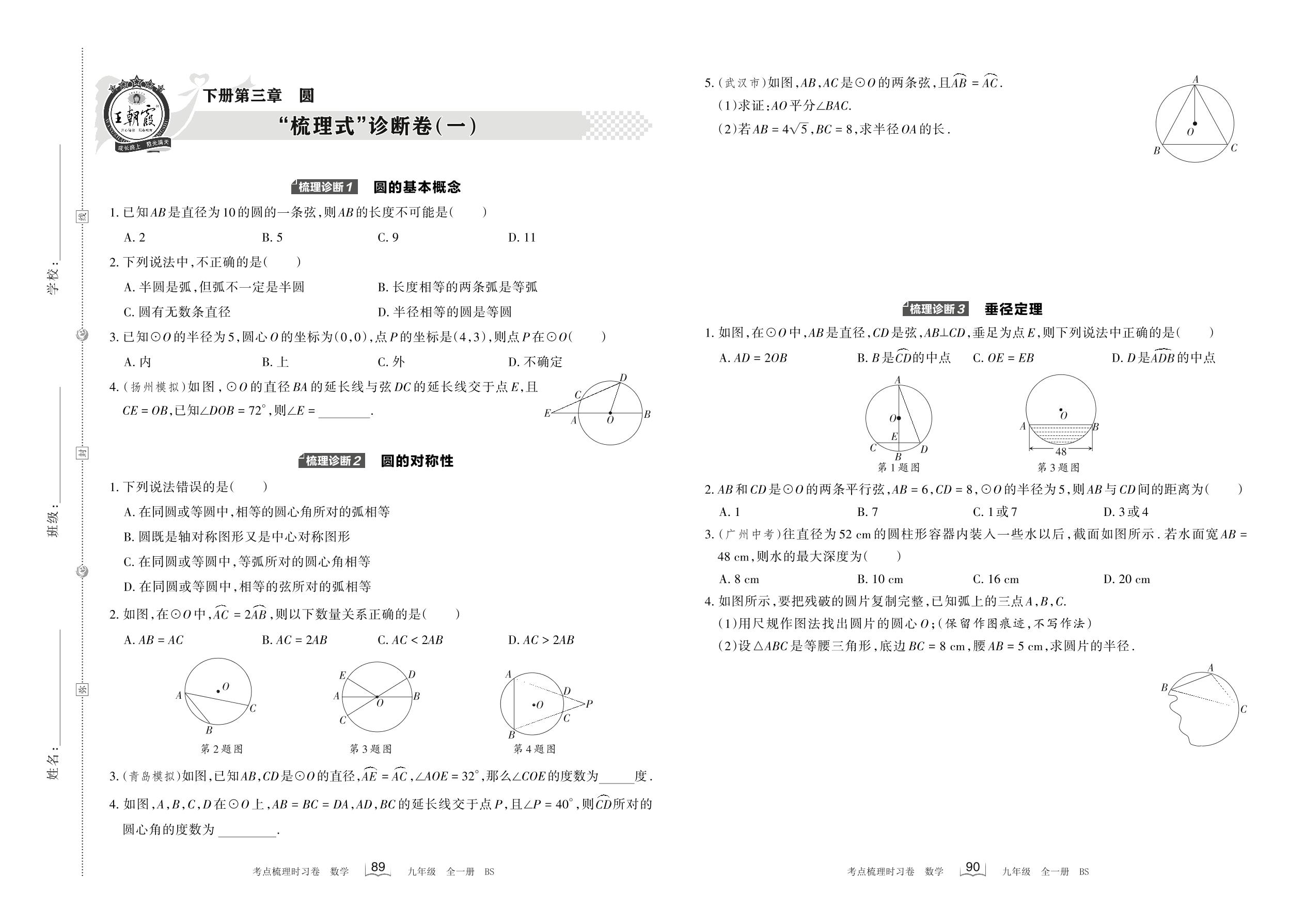 2023下册九年级数学北师版 第三章 “梳理式”诊断卷(一)