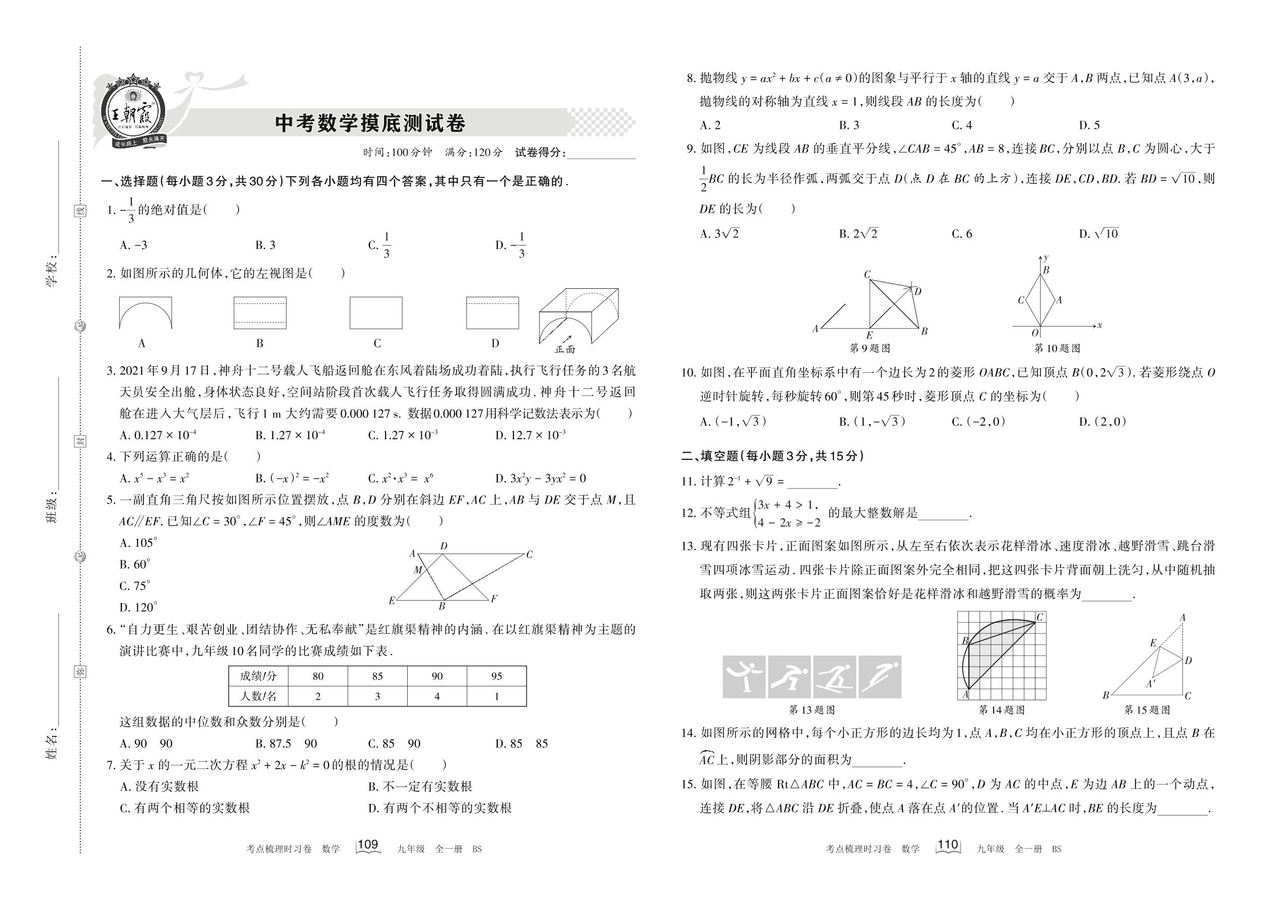 2023下册九年级数学北师版 中考数学摸底测试卷