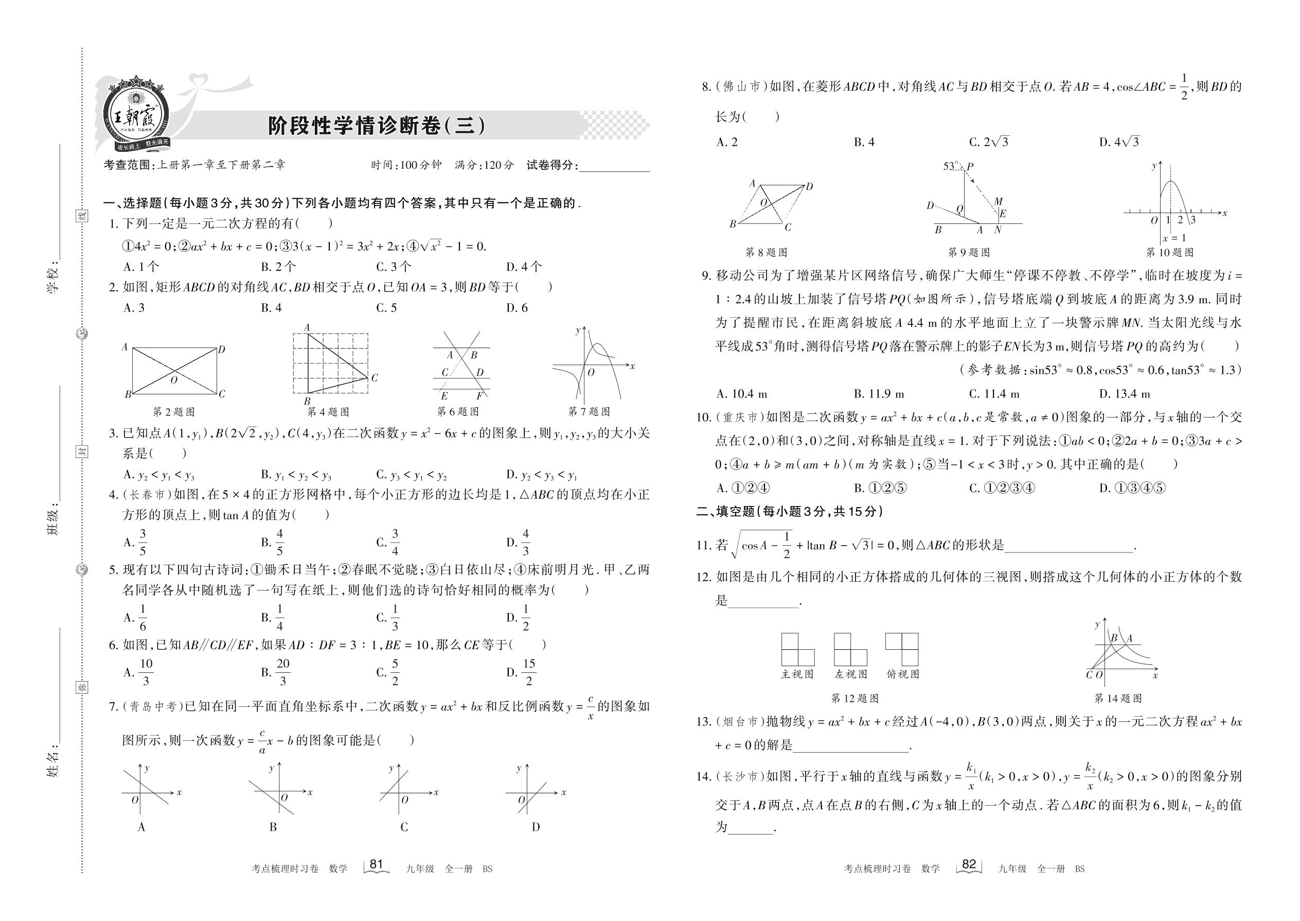 2023下册九年级数学北师版 阶段性学情诊断卷(三)