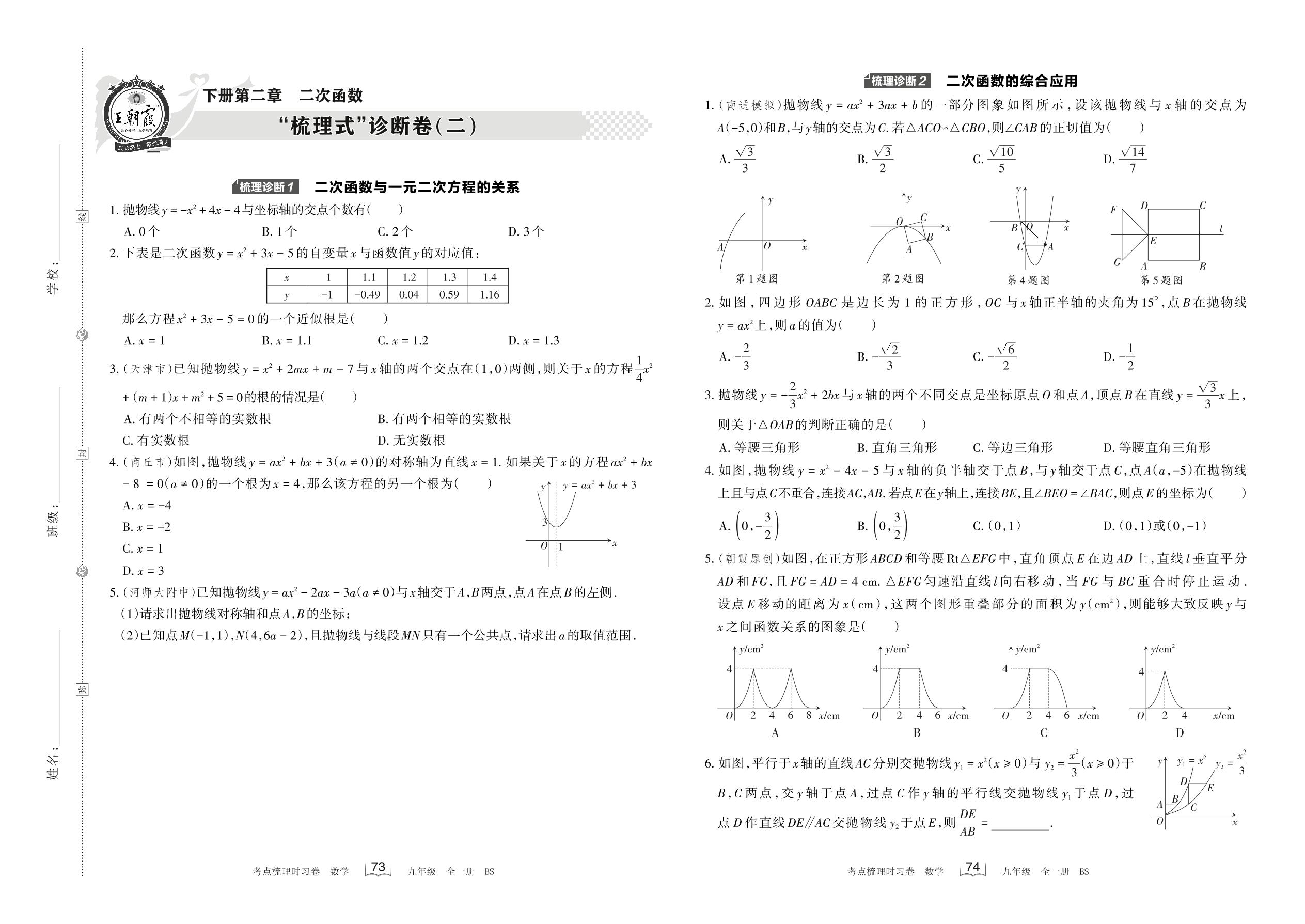 2023下册九年级数学北师版 第二章 “梳理式”诊断卷(二)