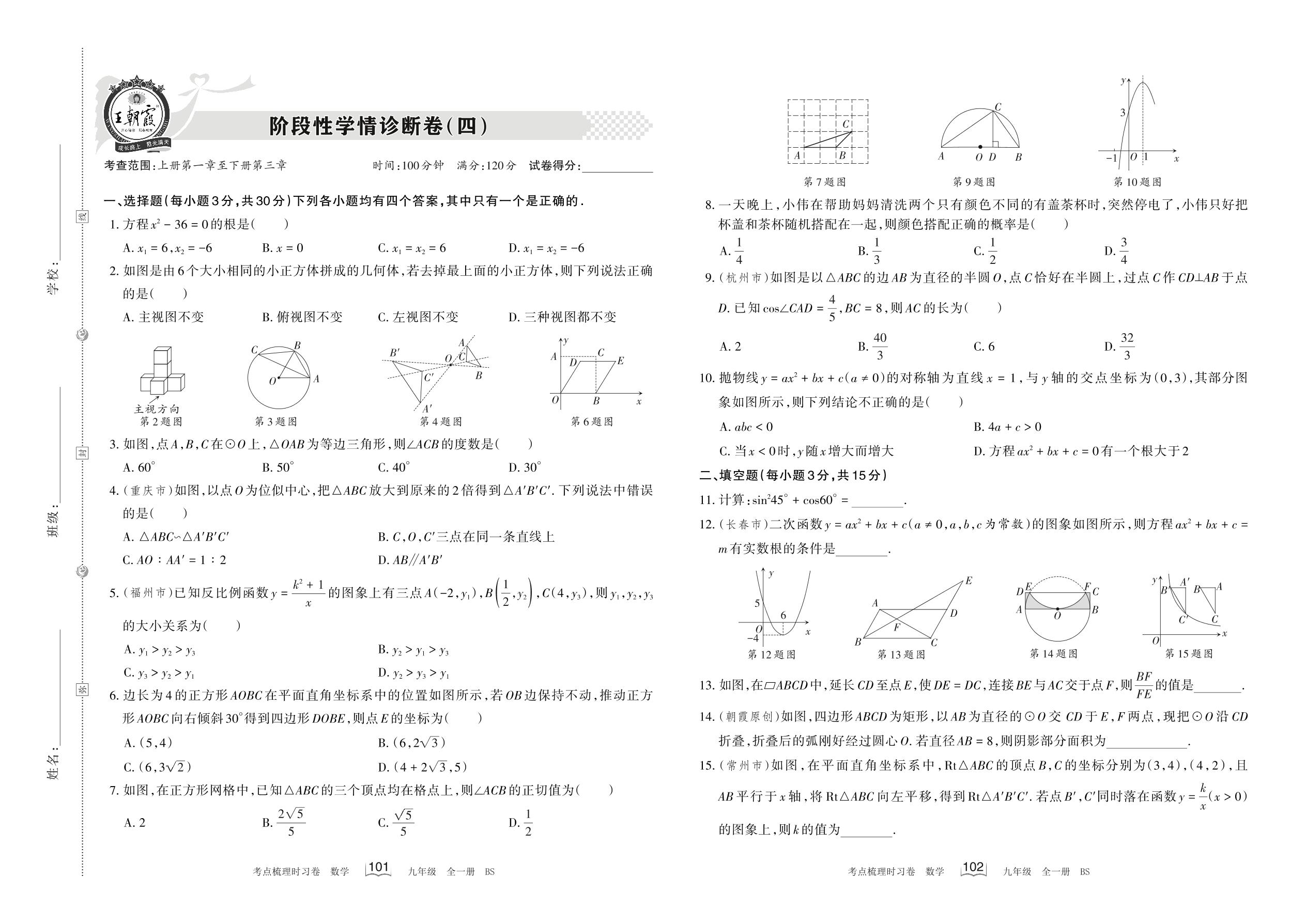 2023下册九年级数学北师版 阶段性学情诊断卷(四)