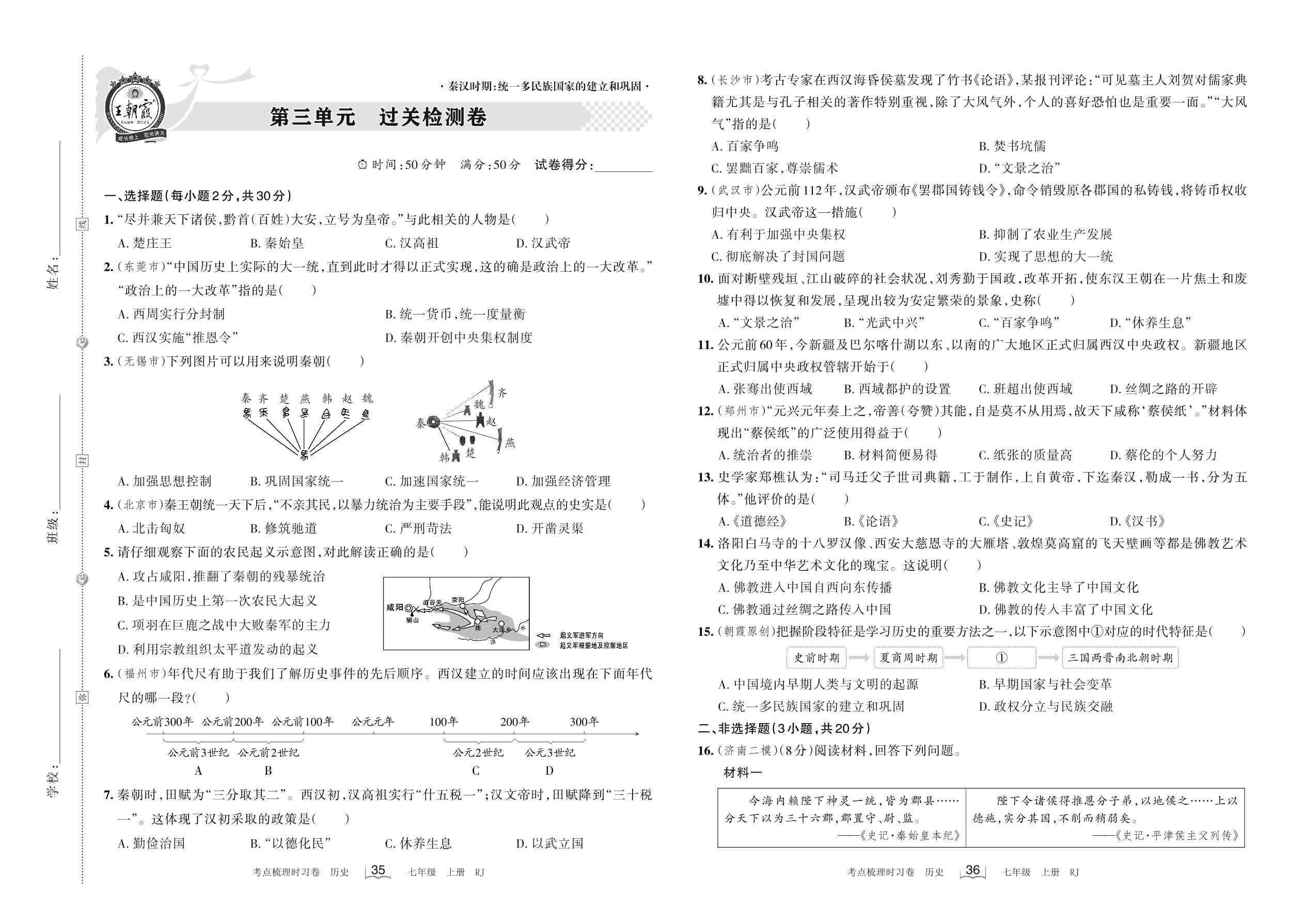 2022上册七年级历史人教版 第三单元 过关检测卷