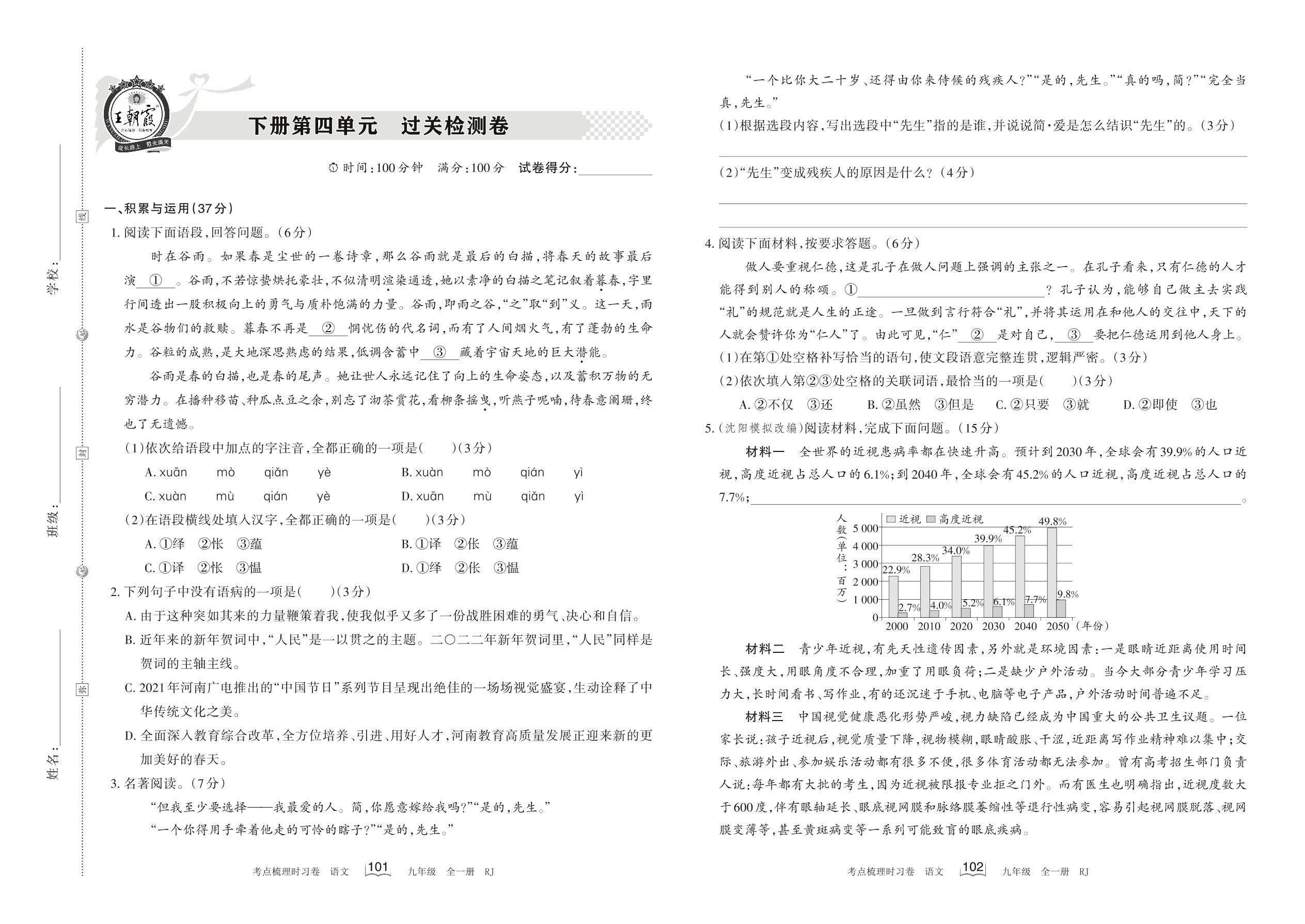 2023下册九年级语文人教版 第四单元 过关检测卷