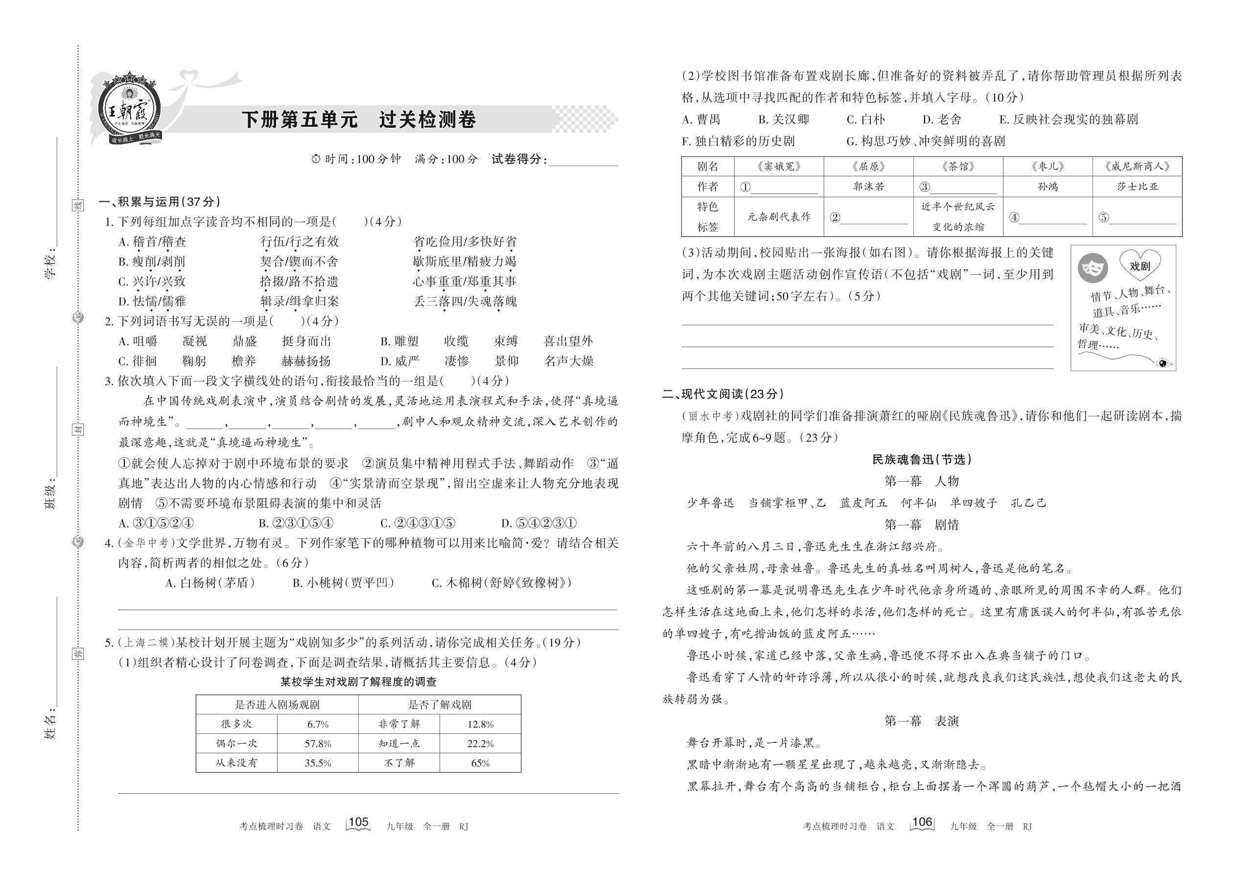 2023下册九年级语文人教版 第五单元 过关检测卷