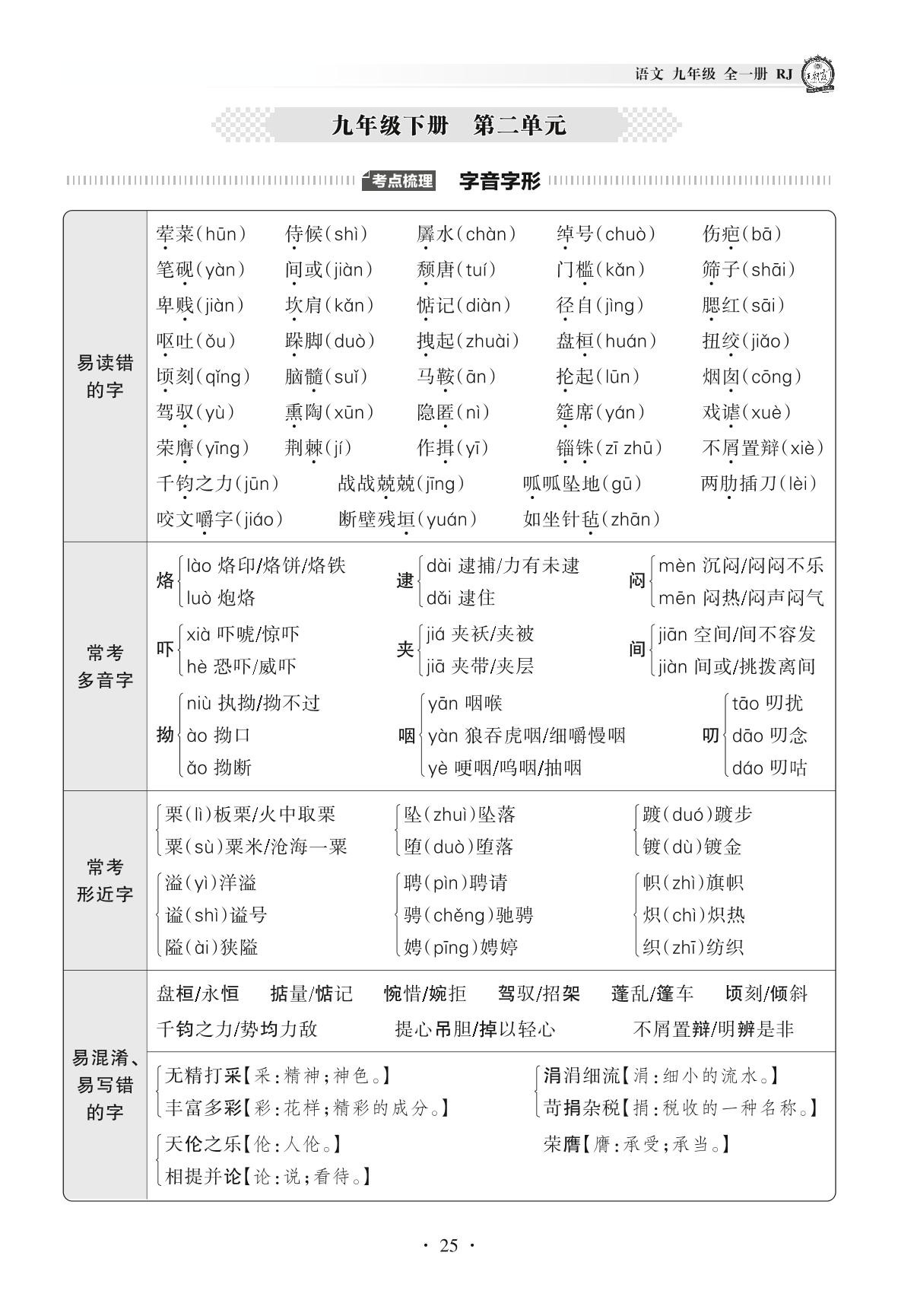 2023下册九年级语文人教版 考点梳理手册——九年级下册 第二单元