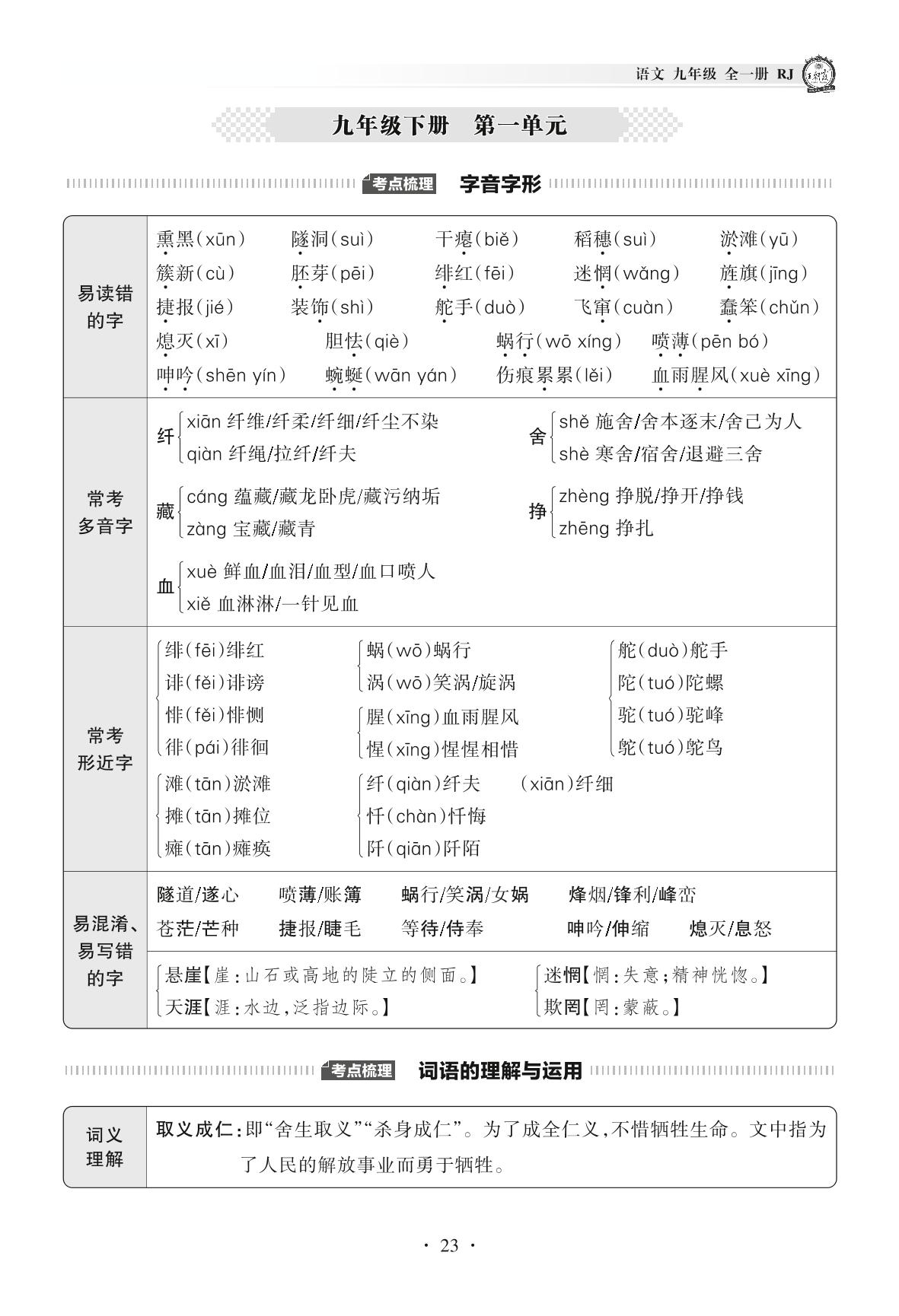 2023下册九年级语文人教版 考点梳理手册——九年级下册 第一单元