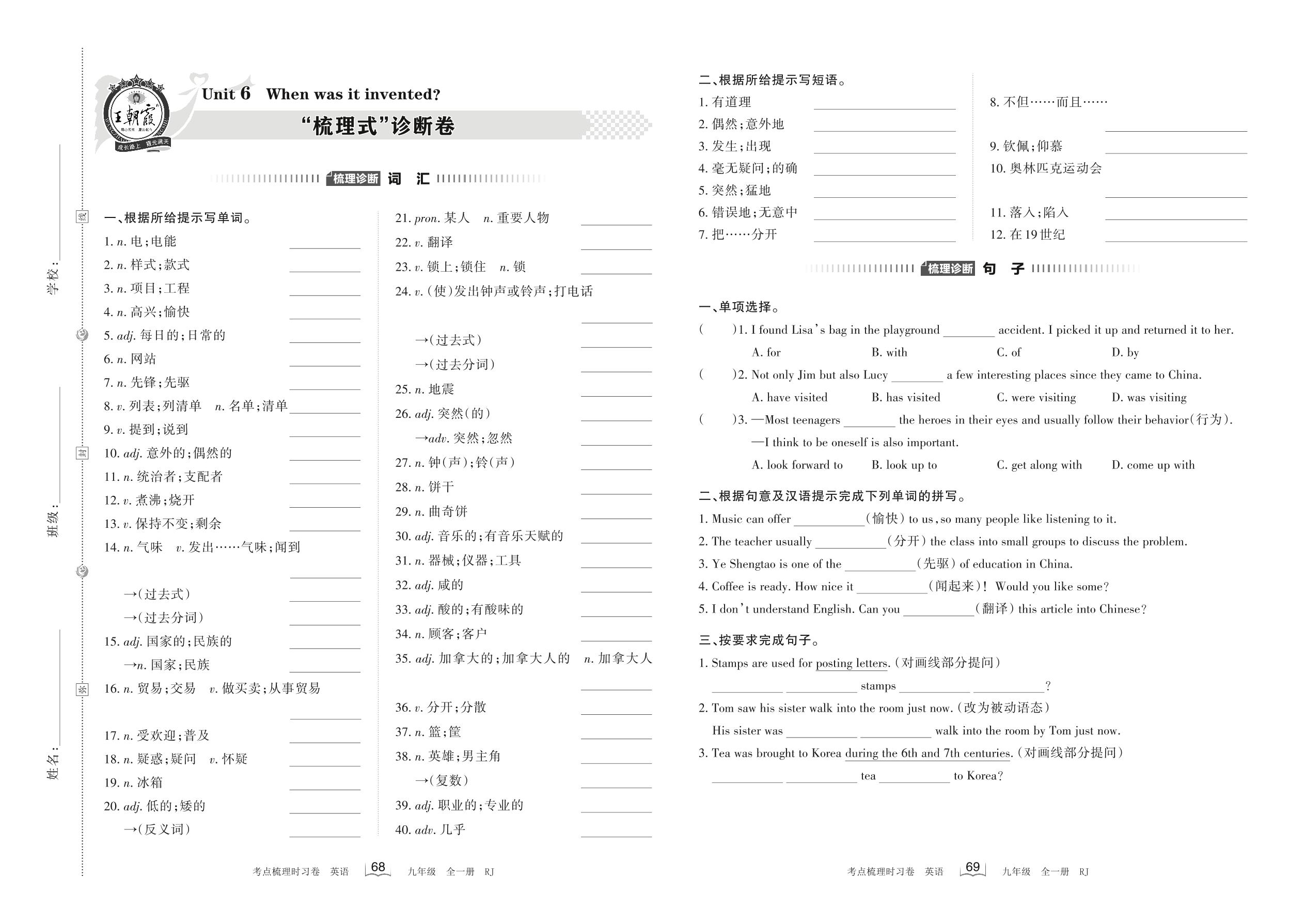 2022-2023学年九年级英语人教版 Unit 6 “梳理式”诊断卷