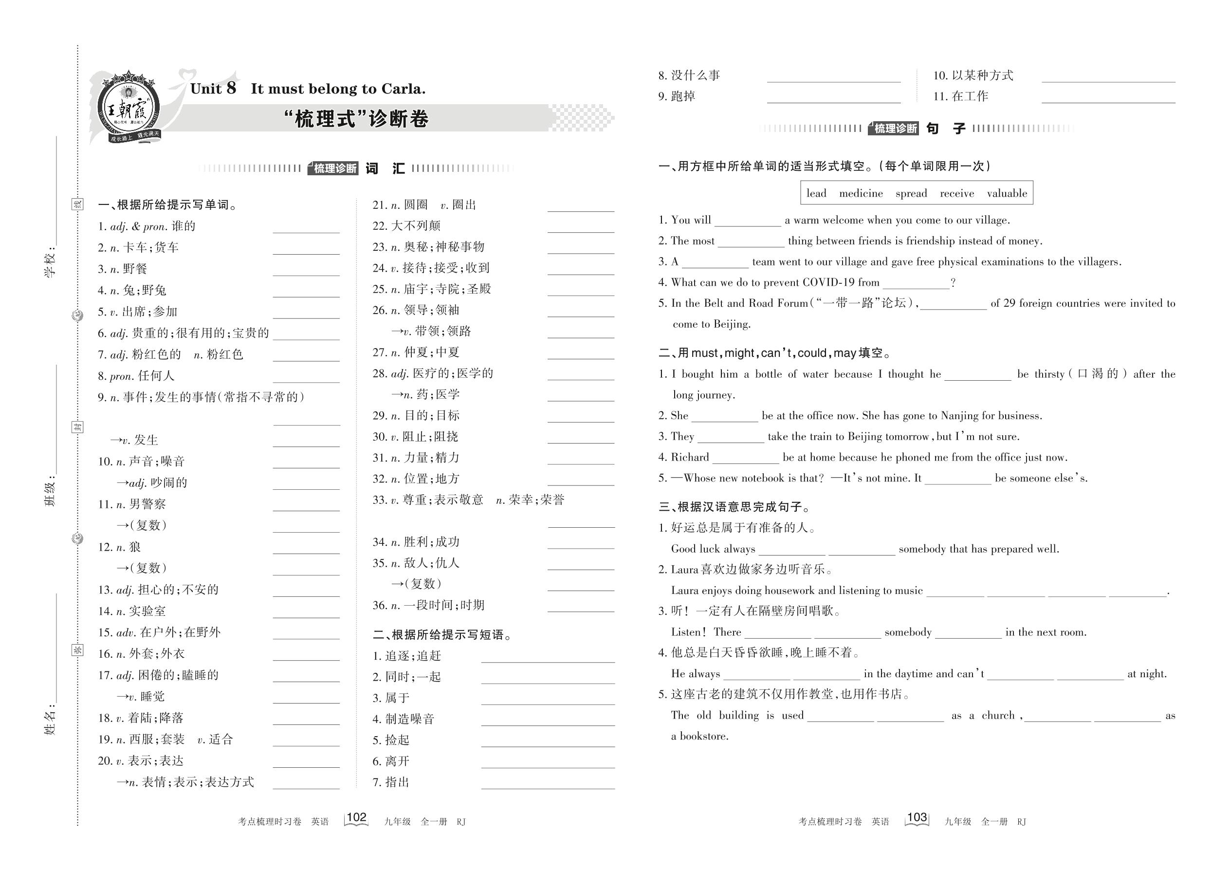 2022-2023学年九年级英语人教版 Unit 8 “梳理式”诊断卷