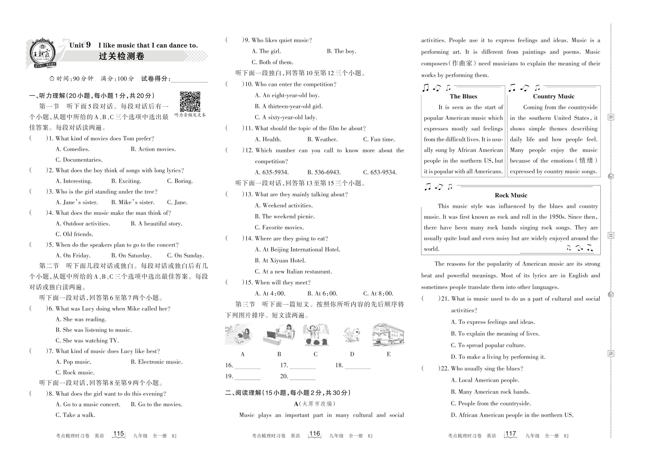 2022-2023学年九年级英语人教版 Unit 9 过关检测卷