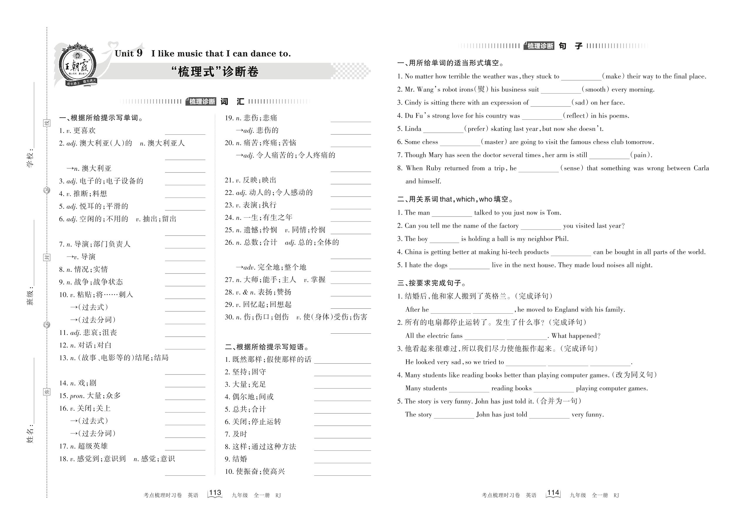 2022-2023学年九年级英语人教版 Unit 9 “梳理式”诊断卷