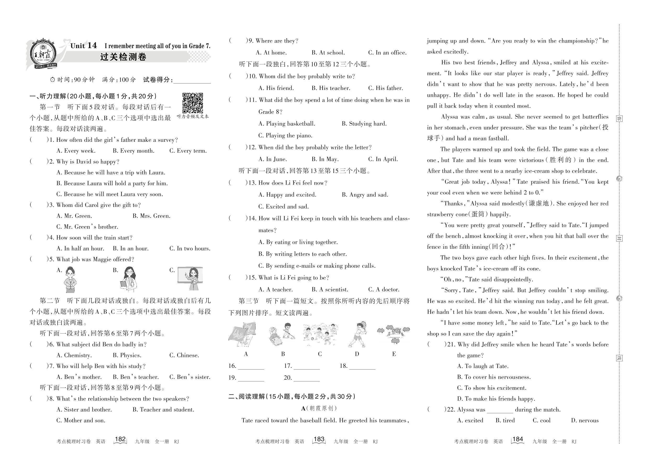 2022-2023学年九年级英语人教版 Unit 14 过关检测卷