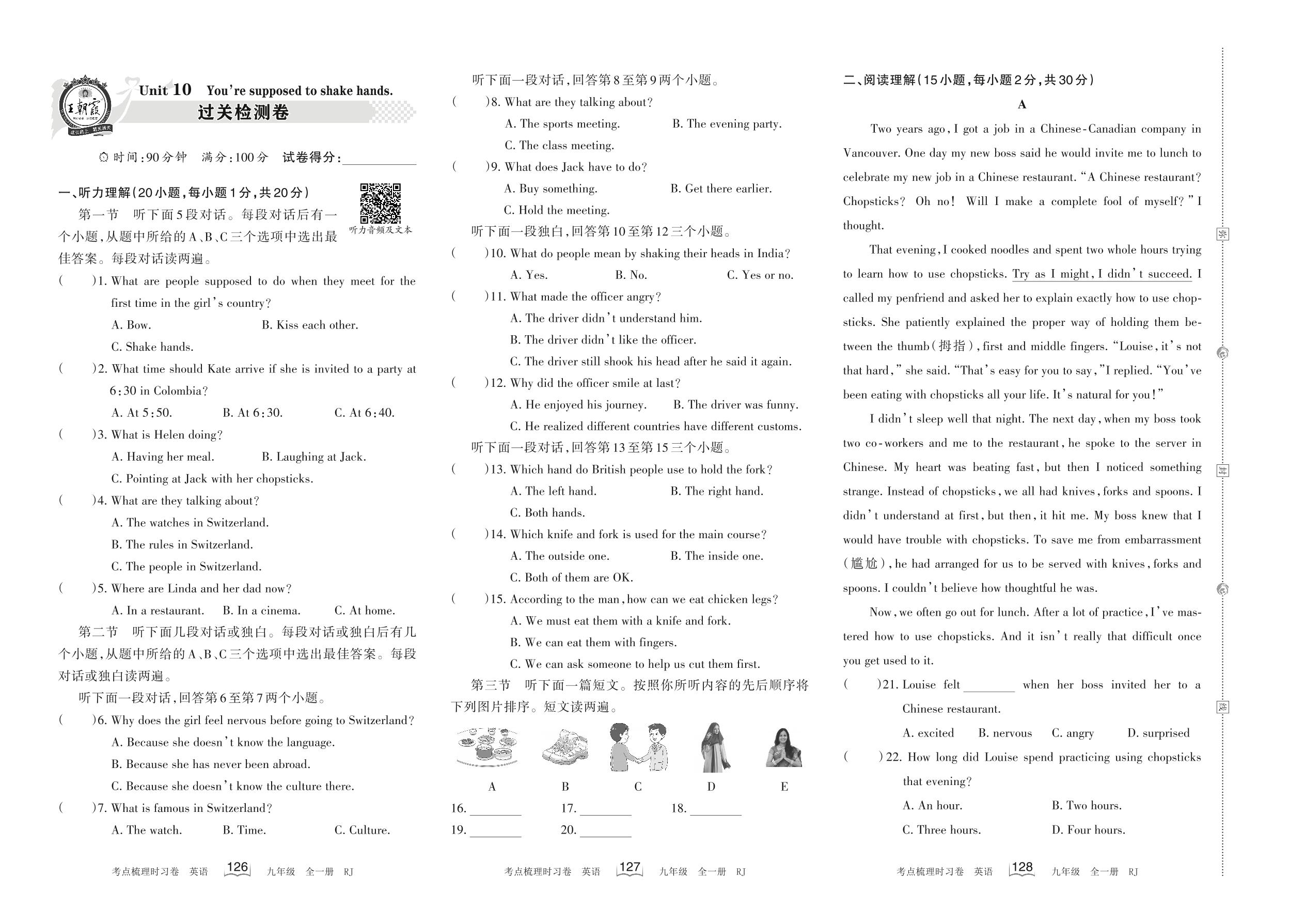2022-2023学年九年级英语人教版 Unit 10 过关检测卷