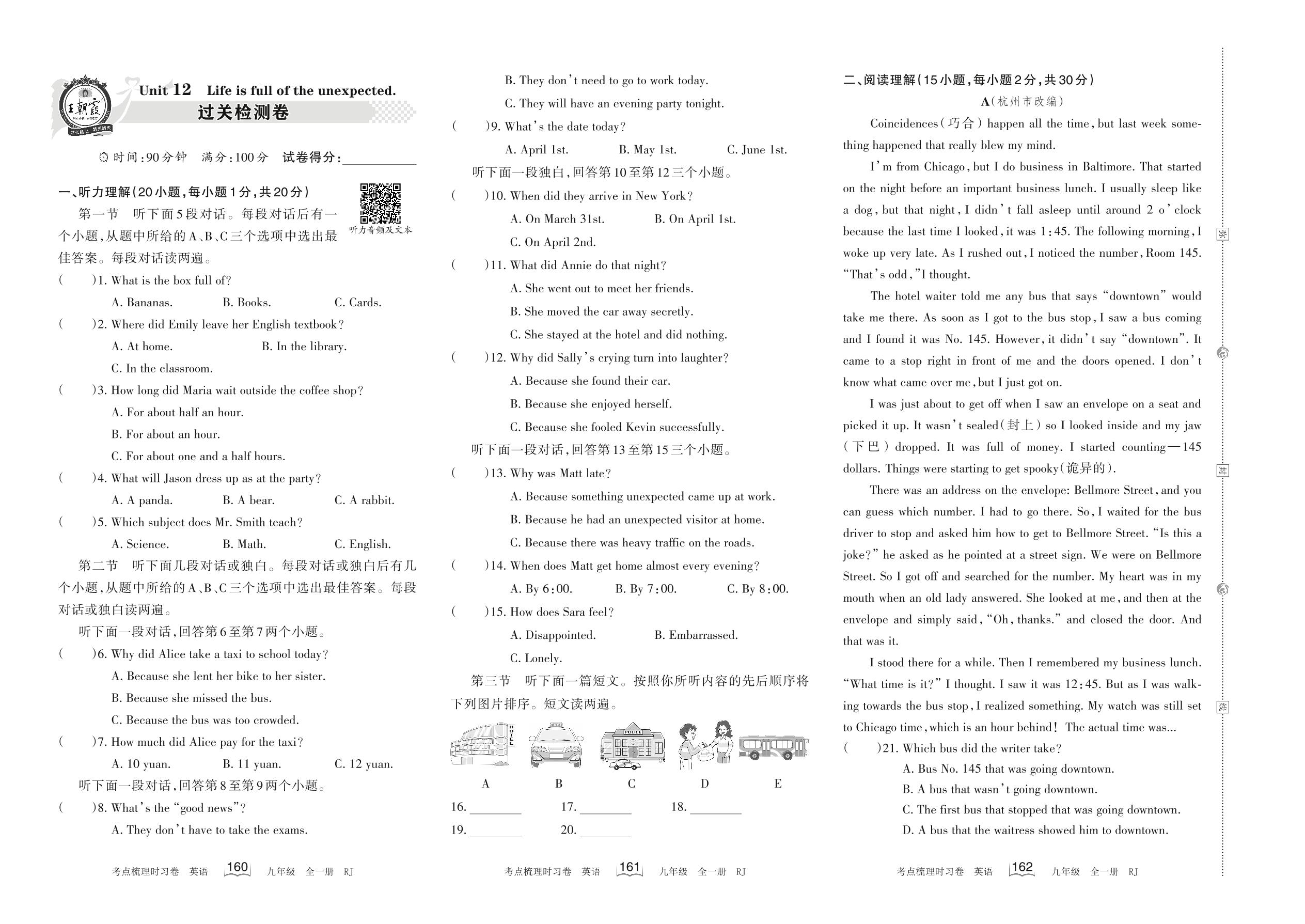 2022-2023学年九年级英语人教版 Unit 12 过关检测卷