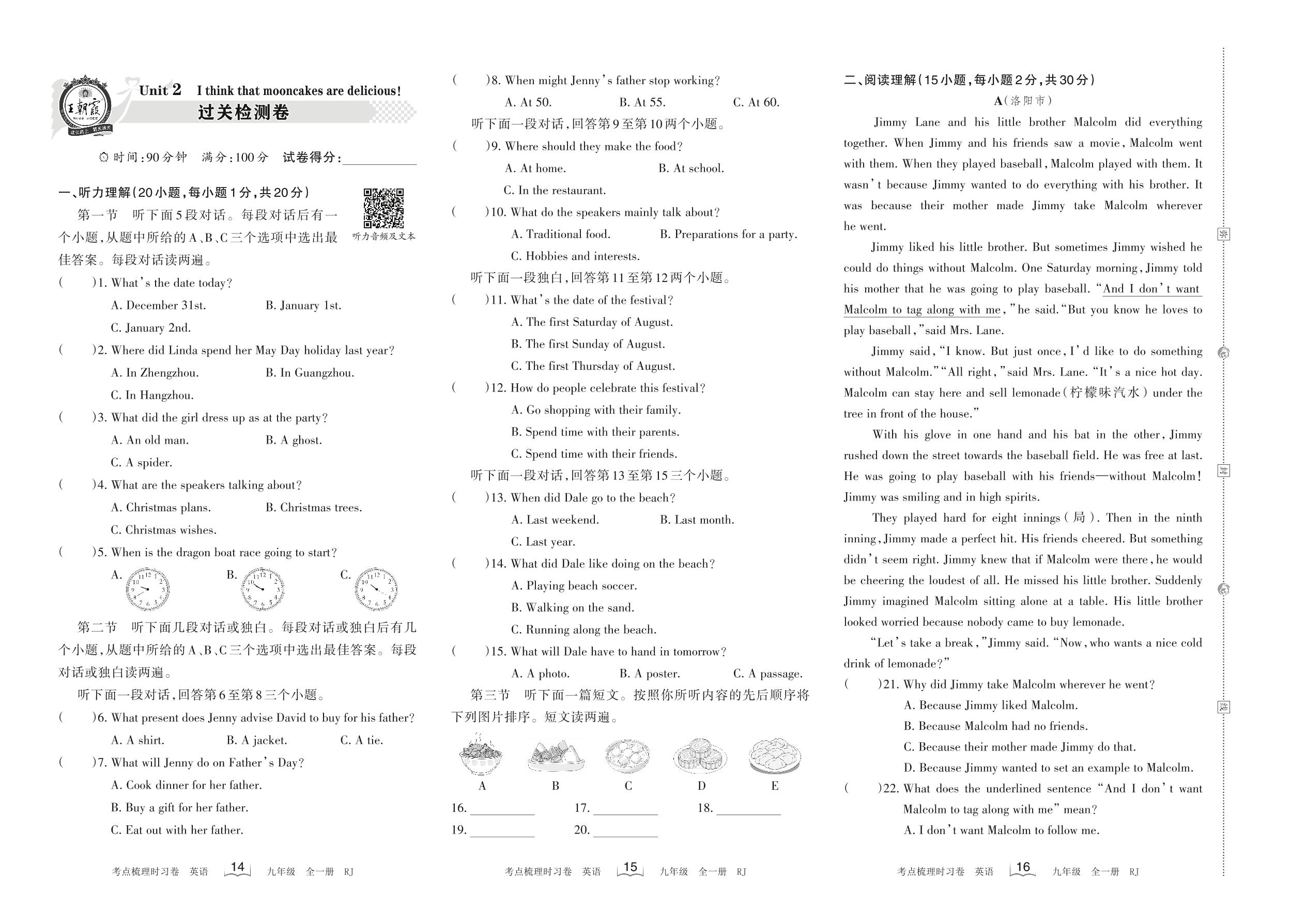 2022-2023学年九年级英语人教版 Unit 2 过关检测卷