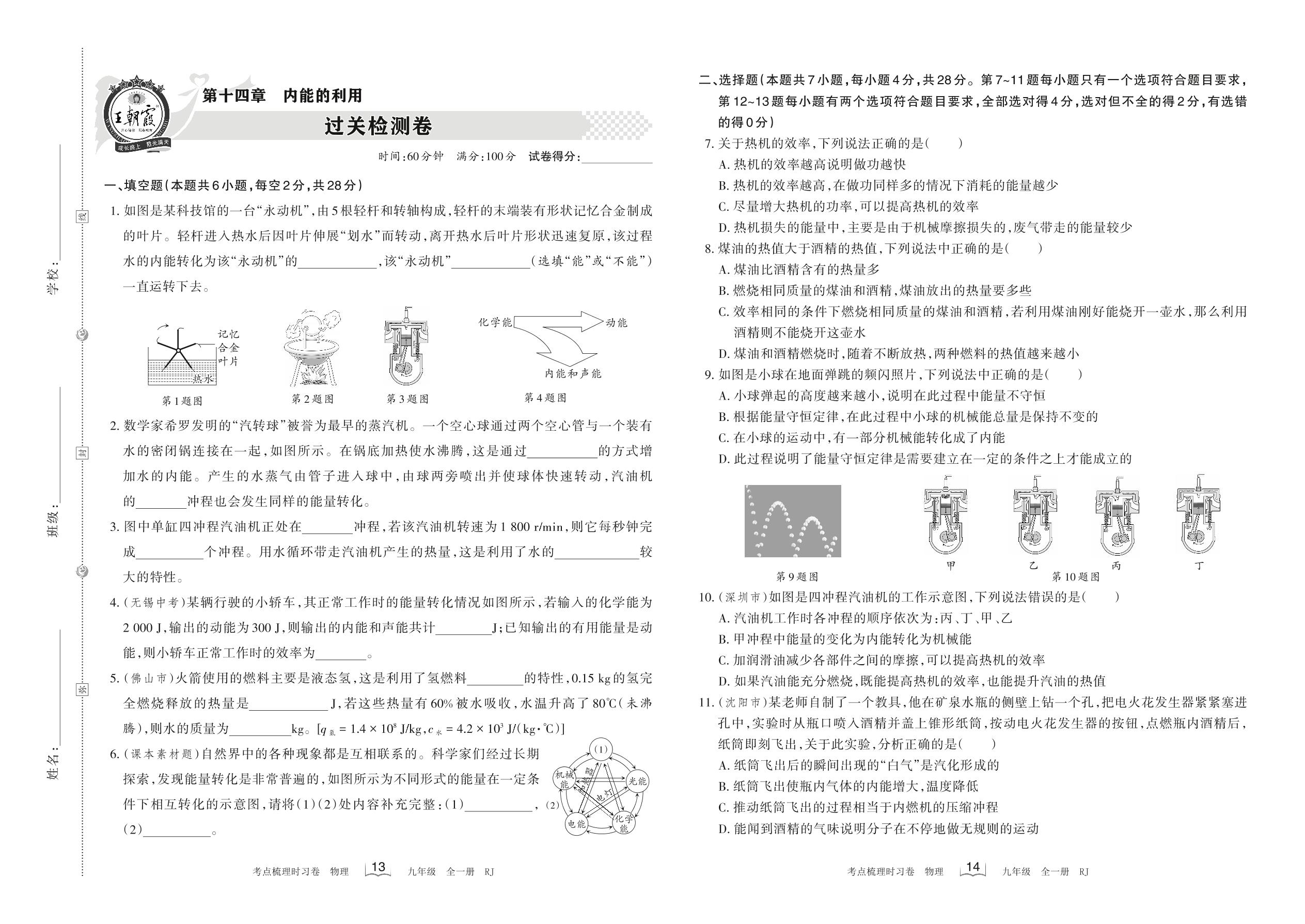 2021-2022学年九年级物理人教版 第十四章 过关检测卷