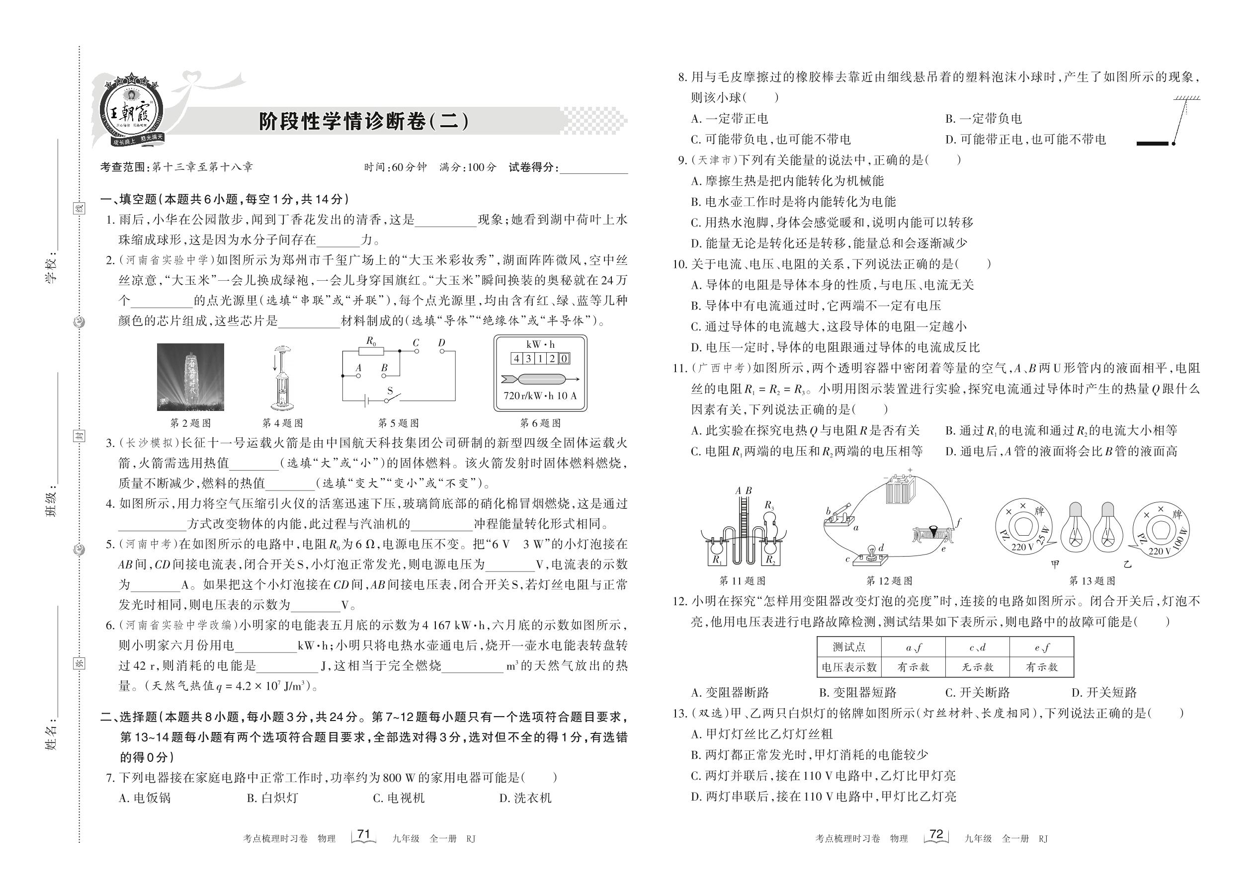 2022-2023学年九年级物理人教版 阶段性学情诊断卷(二)
