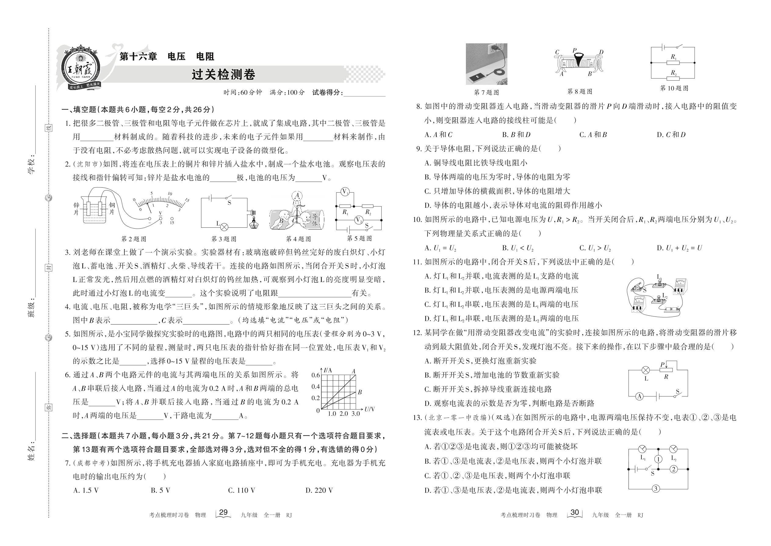 2021-2022学年九年级物理人教版 第十六章 过关检测卷