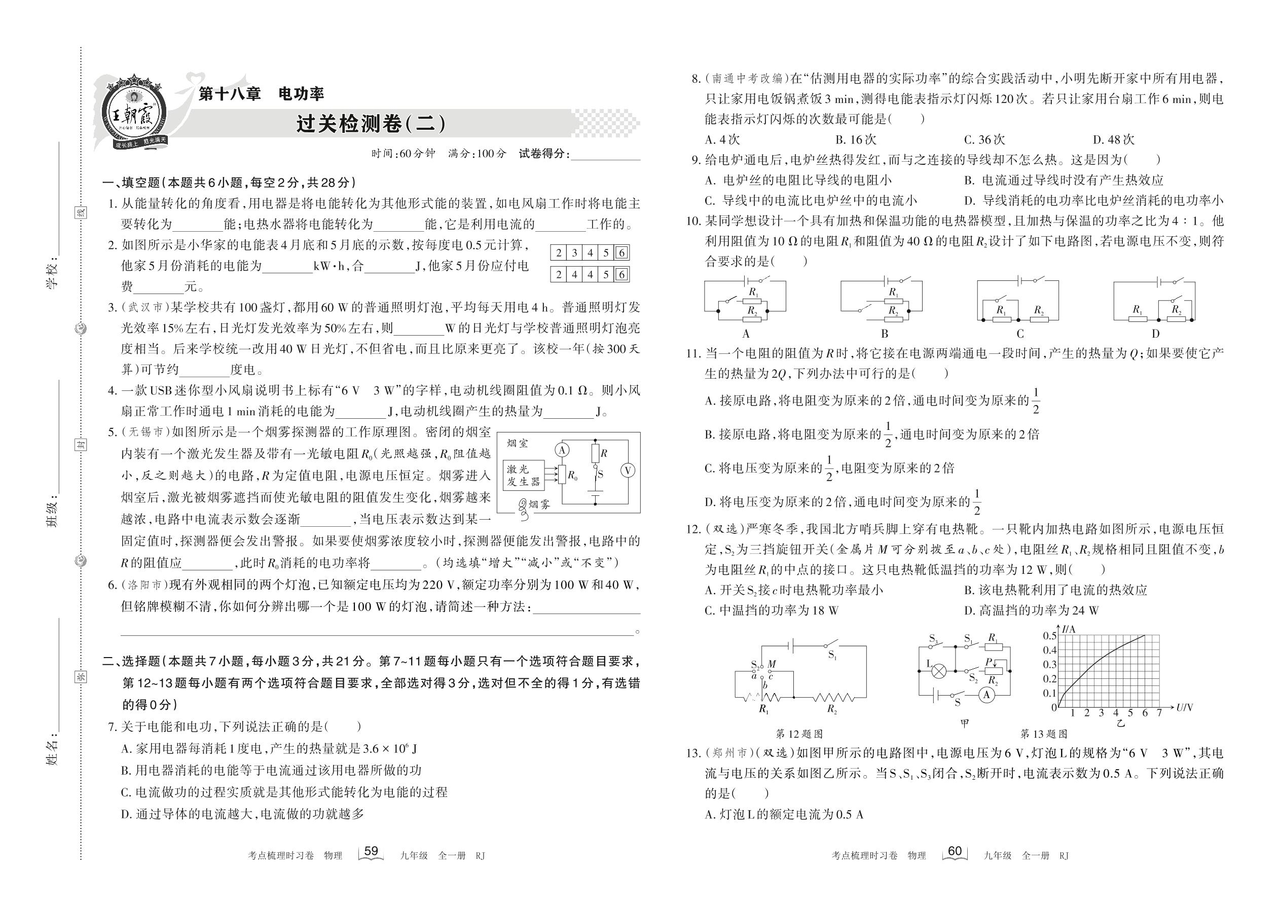 2021-2022学年九年级物理人教版 第十八章 过关检测卷(二)