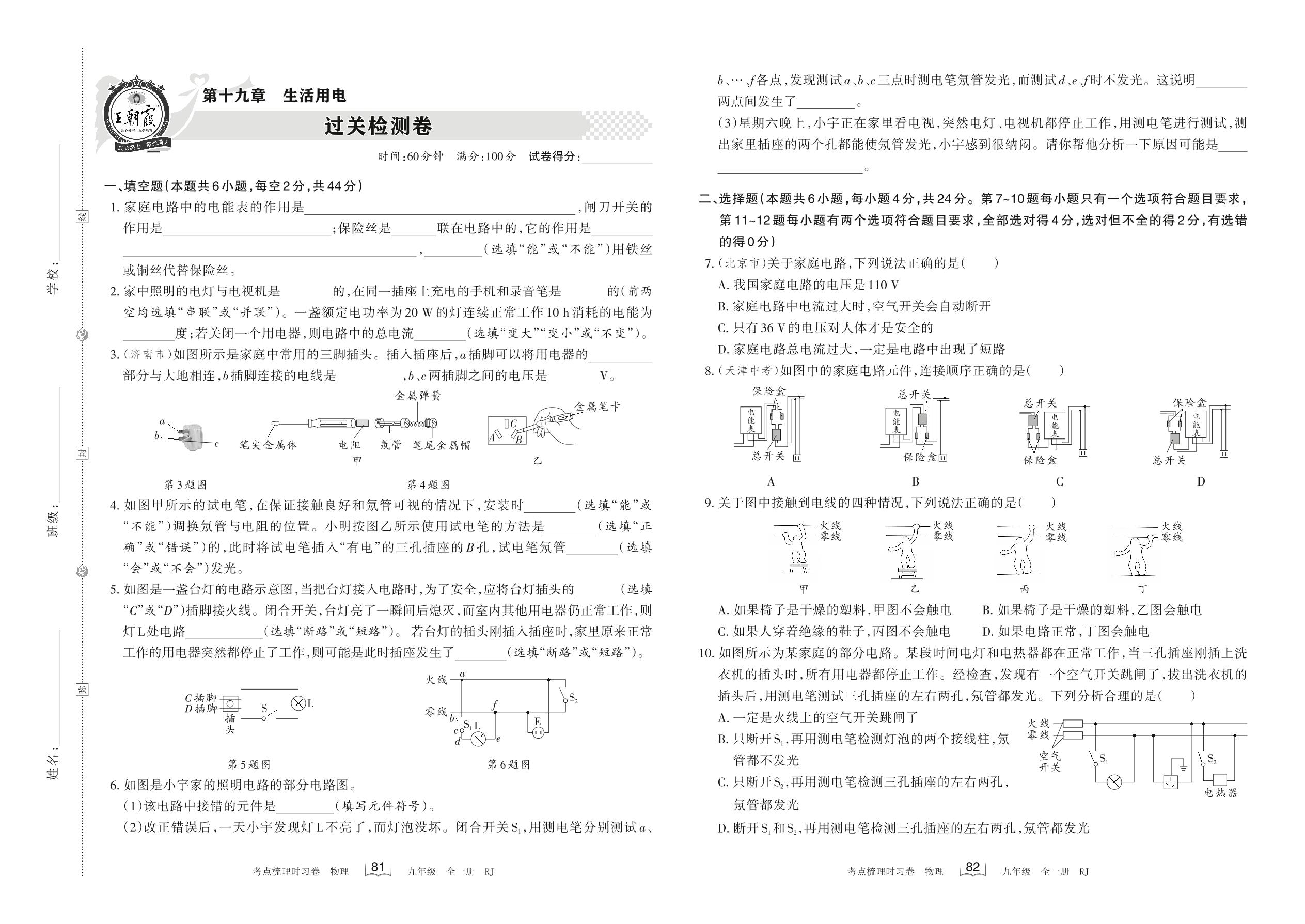 2021-2022学年九年级物理人教版 第十九章 过关检测卷