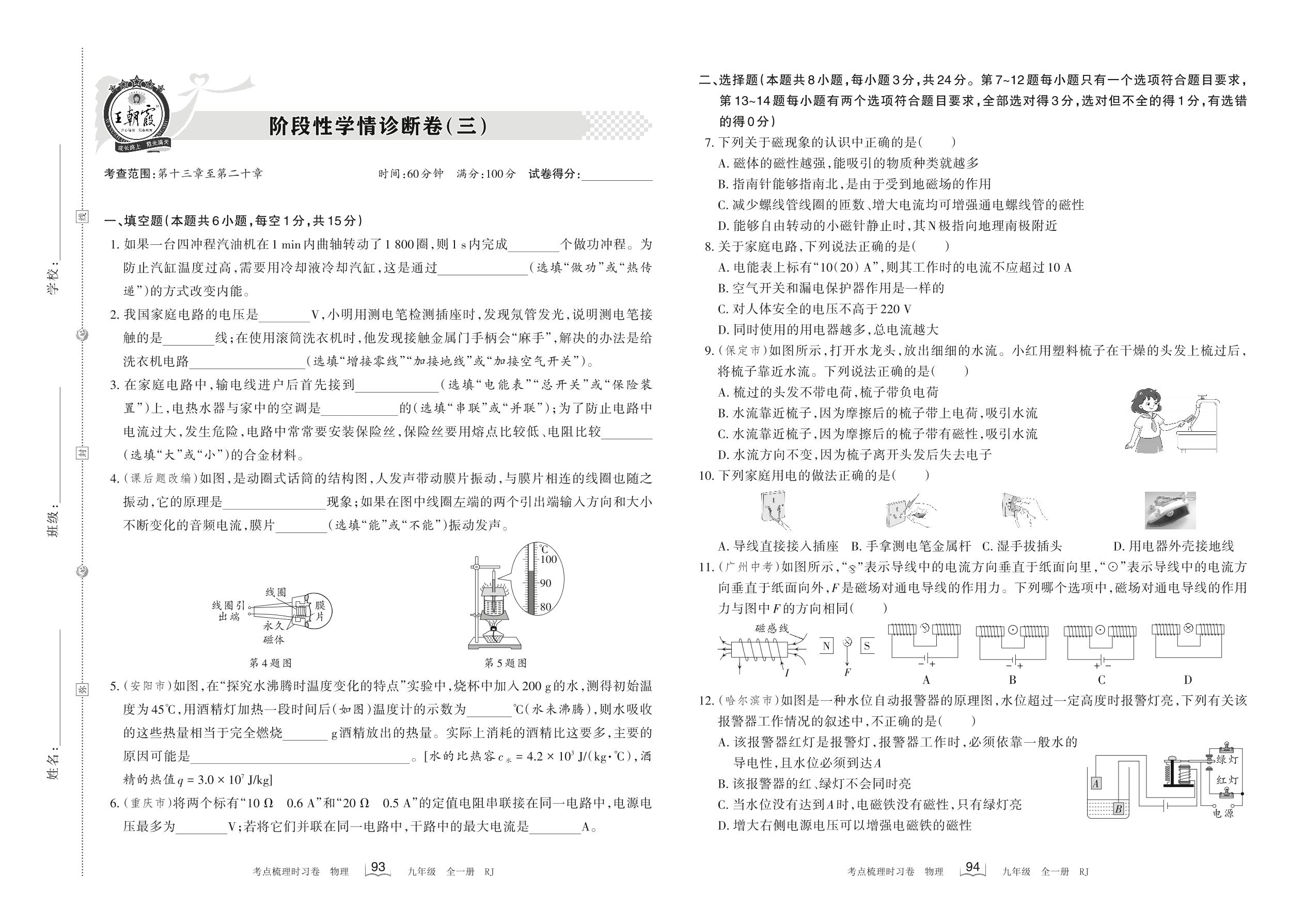 2022-2023学年九年级物理人教版 阶段性学情诊断卷(三)