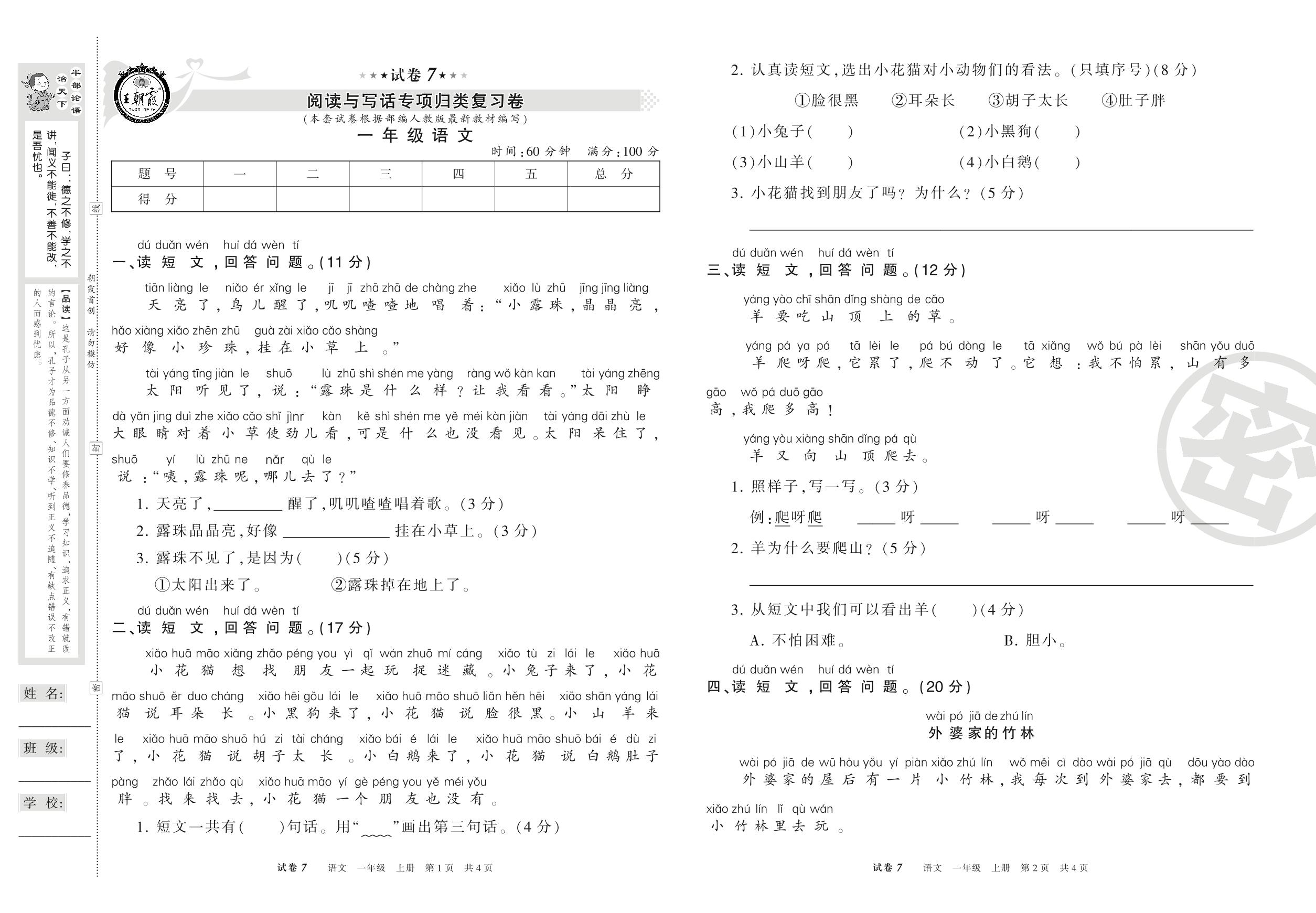 王朝霞期末专项卷一年级上册语文(人教版)_R210731184459【7】