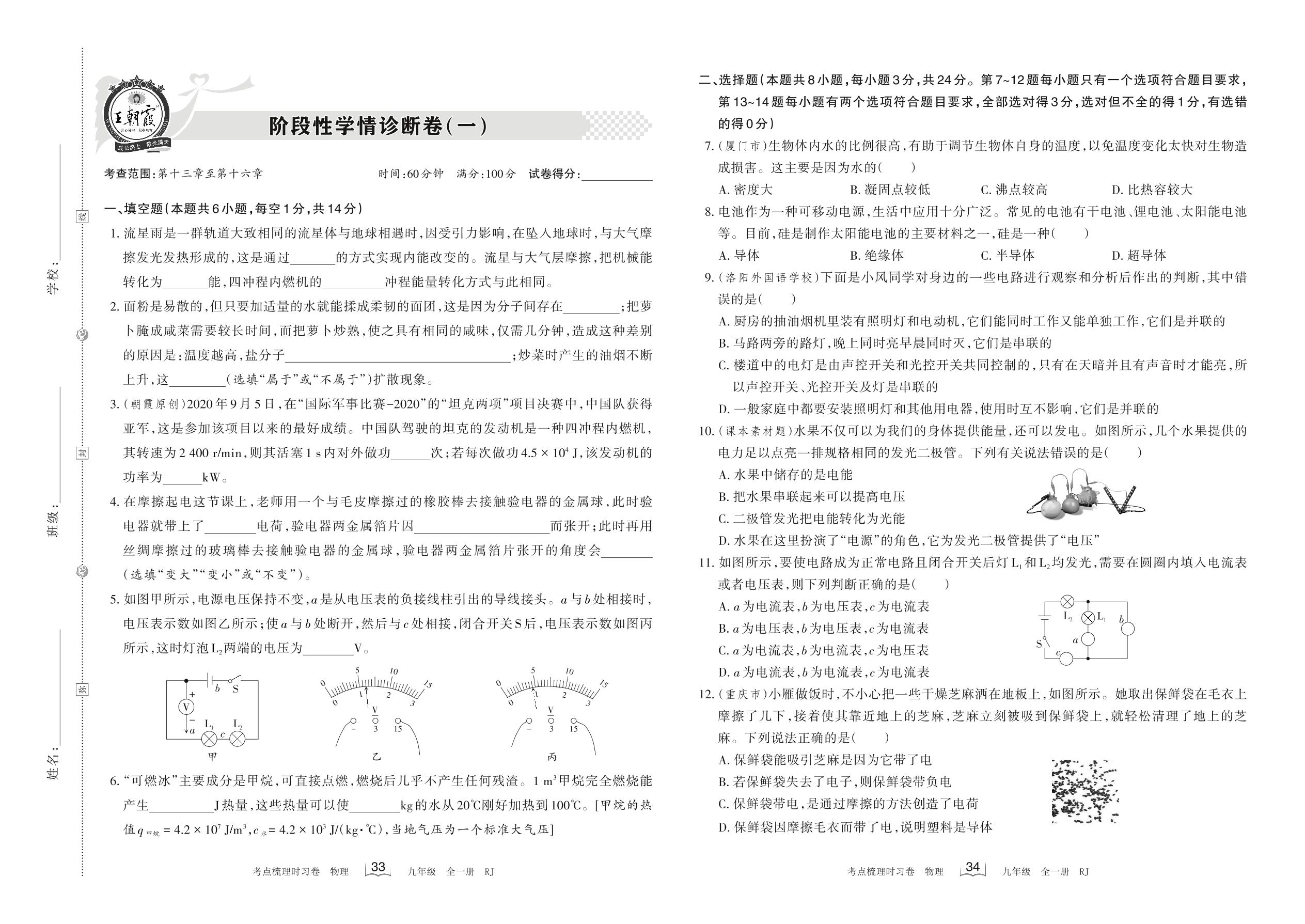 2022-2023学年九年级物理人教版 第十六章 阶段性学情诊断卷(一)