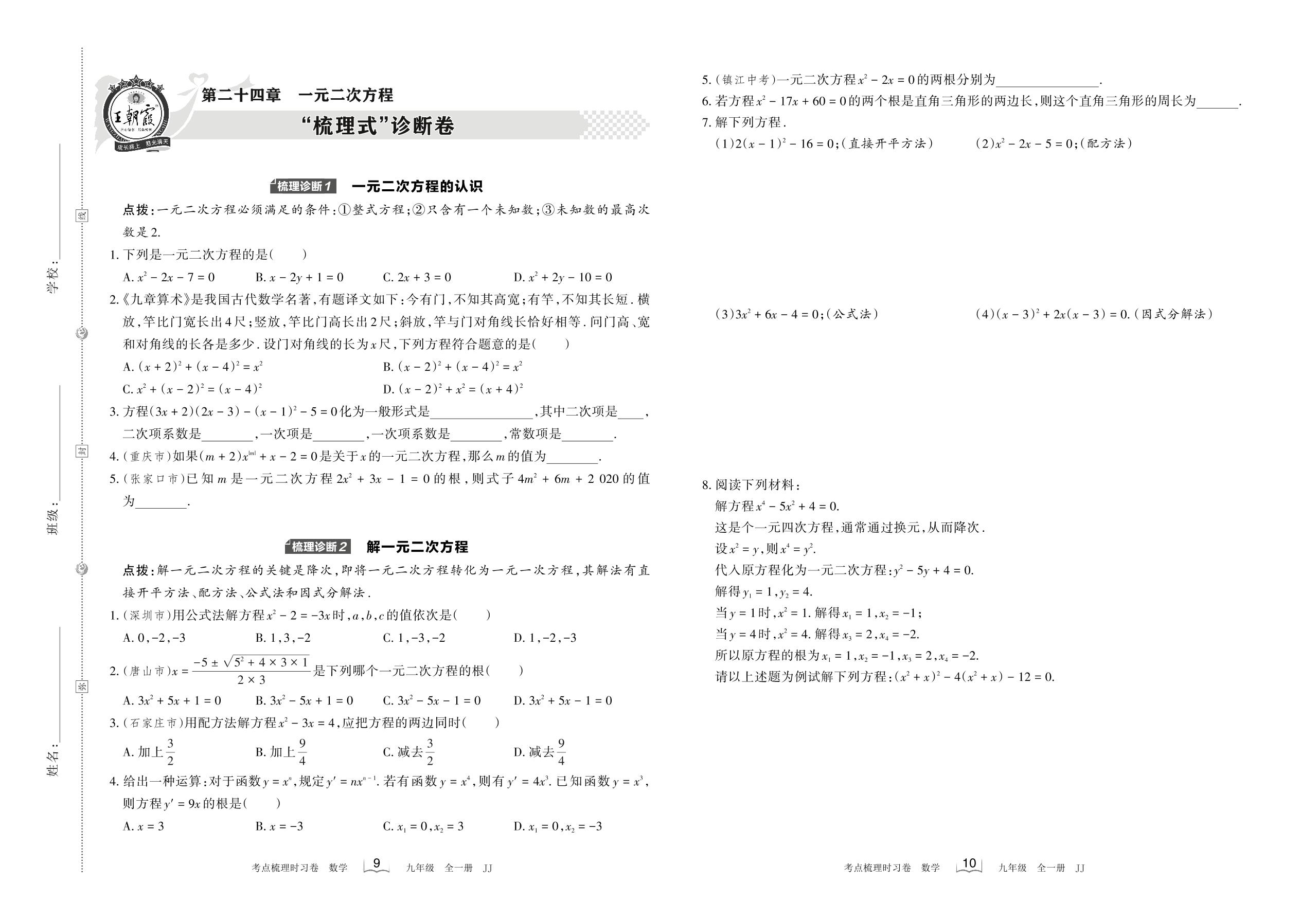 2022秋九年级数学冀教版 第二十四章 “梳理式”诊断卷