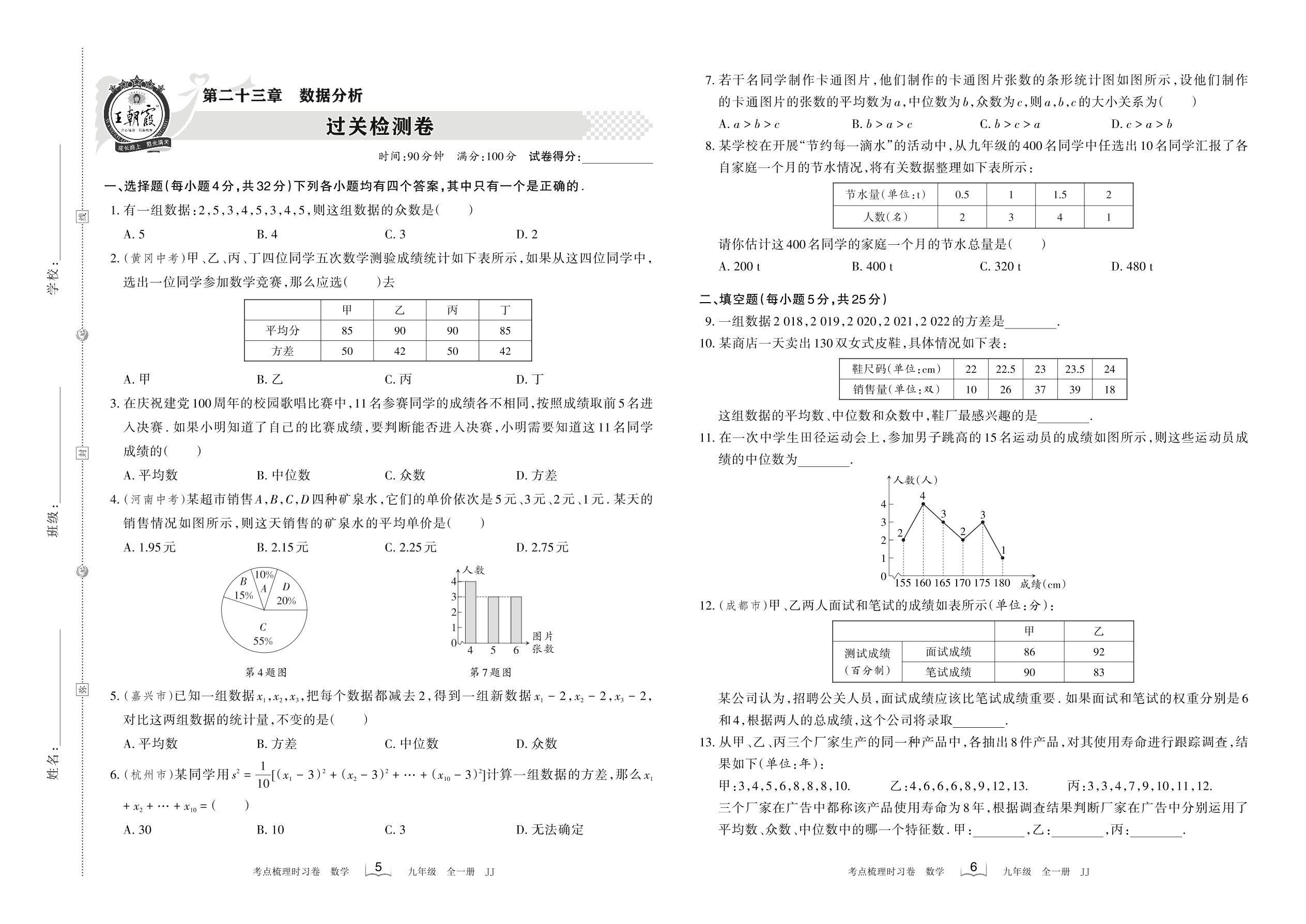 2022秋九年级数学冀教版 第二十三章 过关检测卷