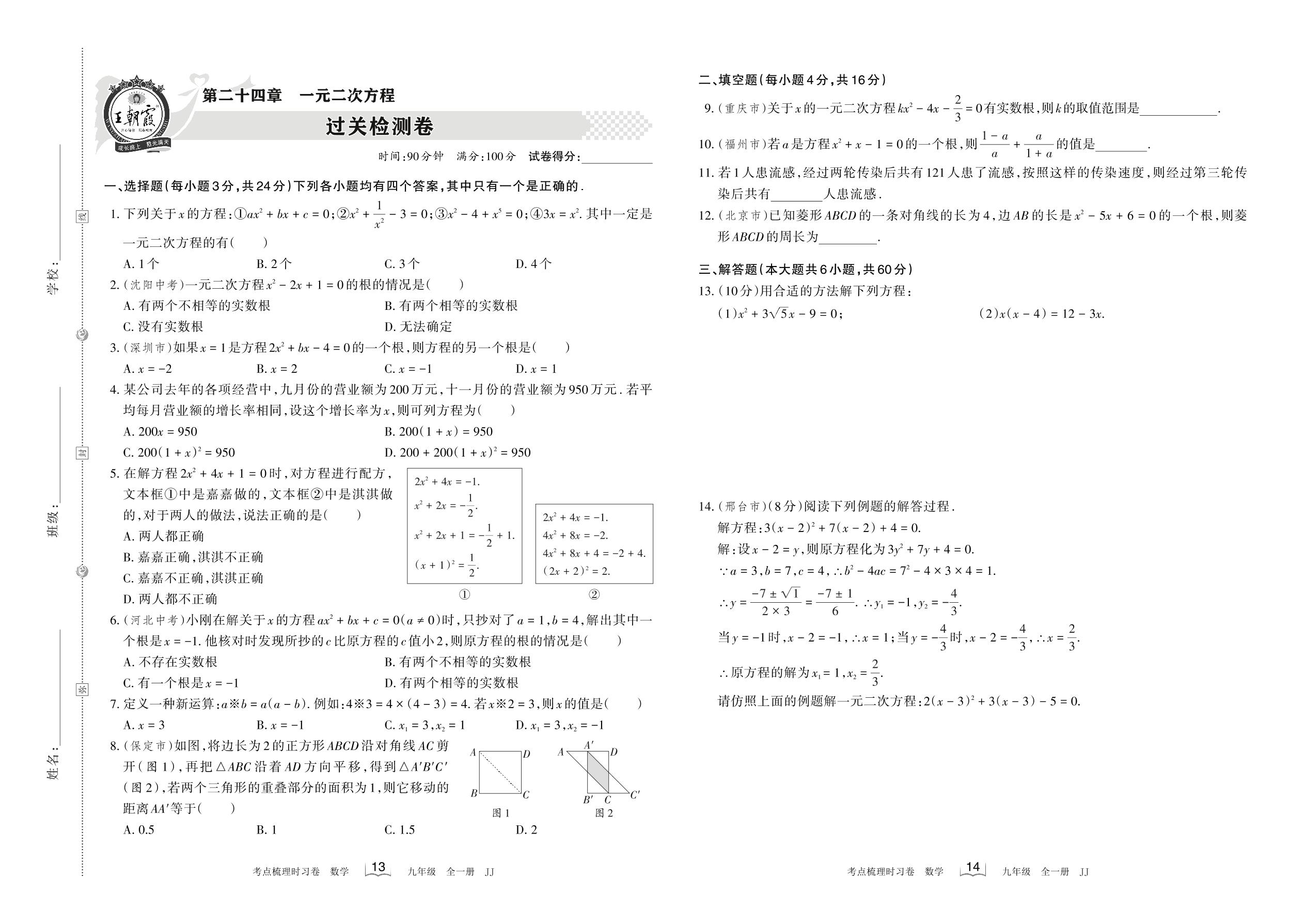 2022秋九年级数学冀教版 第二十四章 过关检测卷