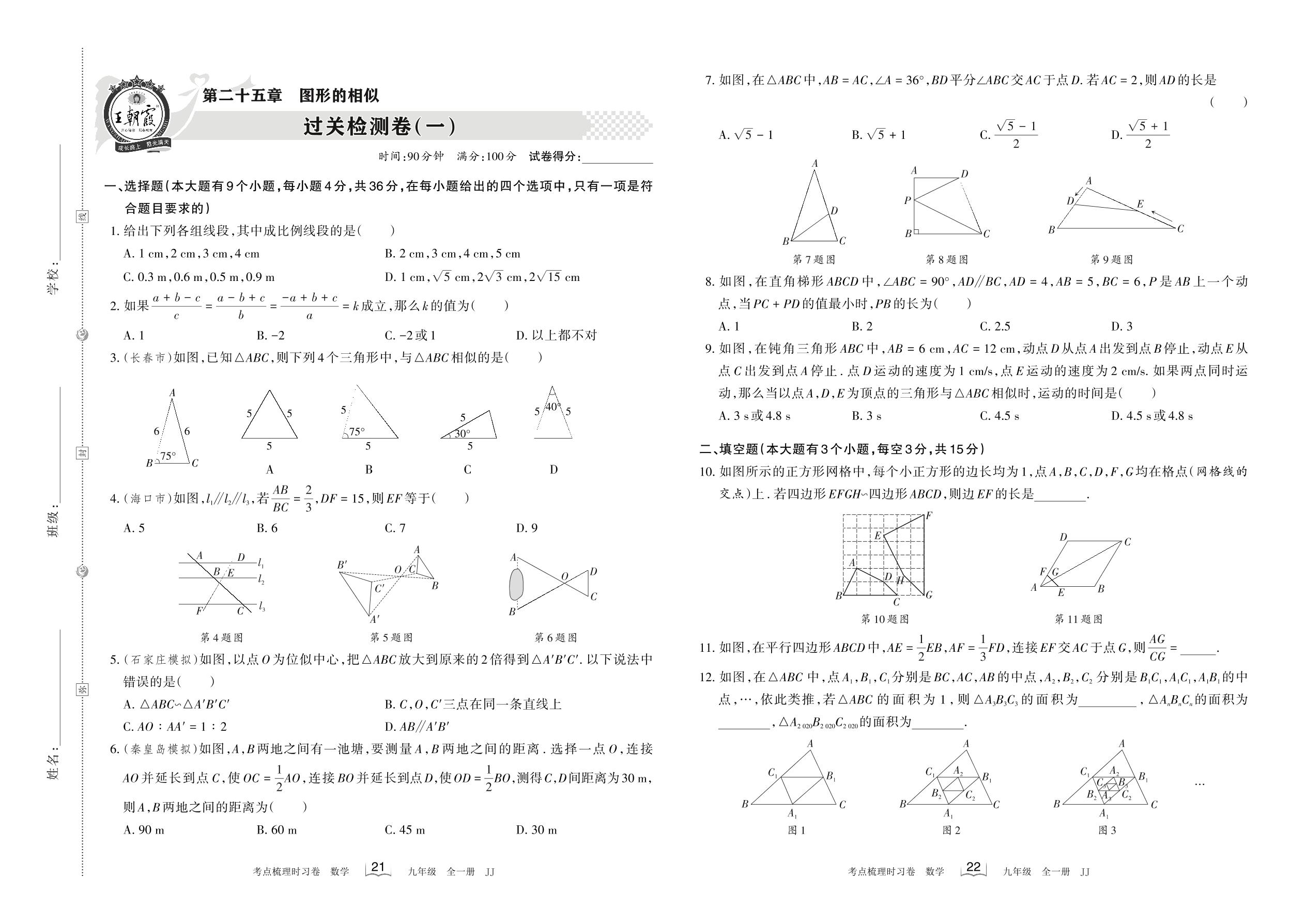 2022秋九年级数学冀教版 第二十五章 过关检测卷(一)